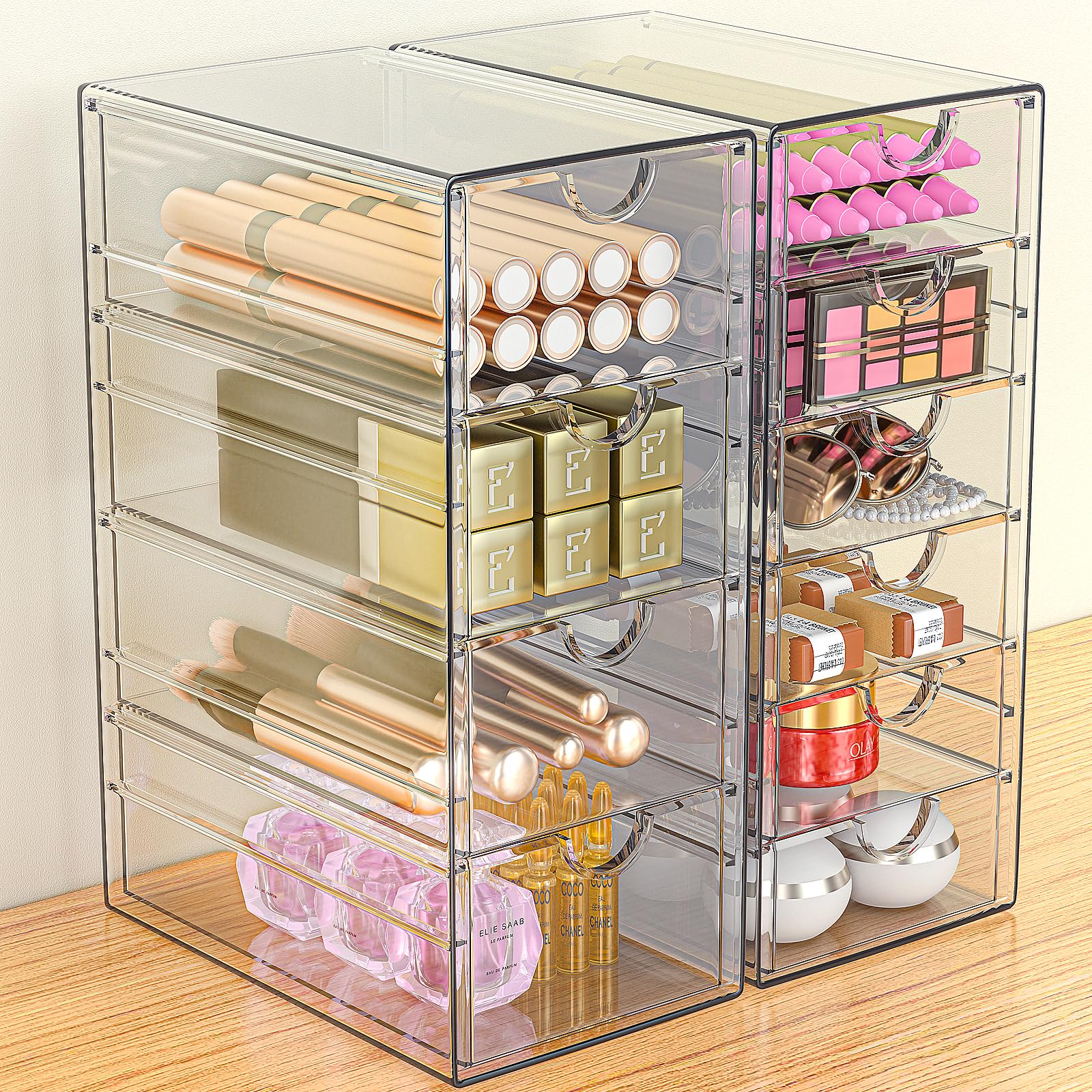 GoMaihe Kosmetik Organizer mit 10-Schubladen: 2PCS Acryl Schubladenbox | Durchsichtig Schminktisch Organizer für Badezimmer Schlafzimmer Ankleidezimmer