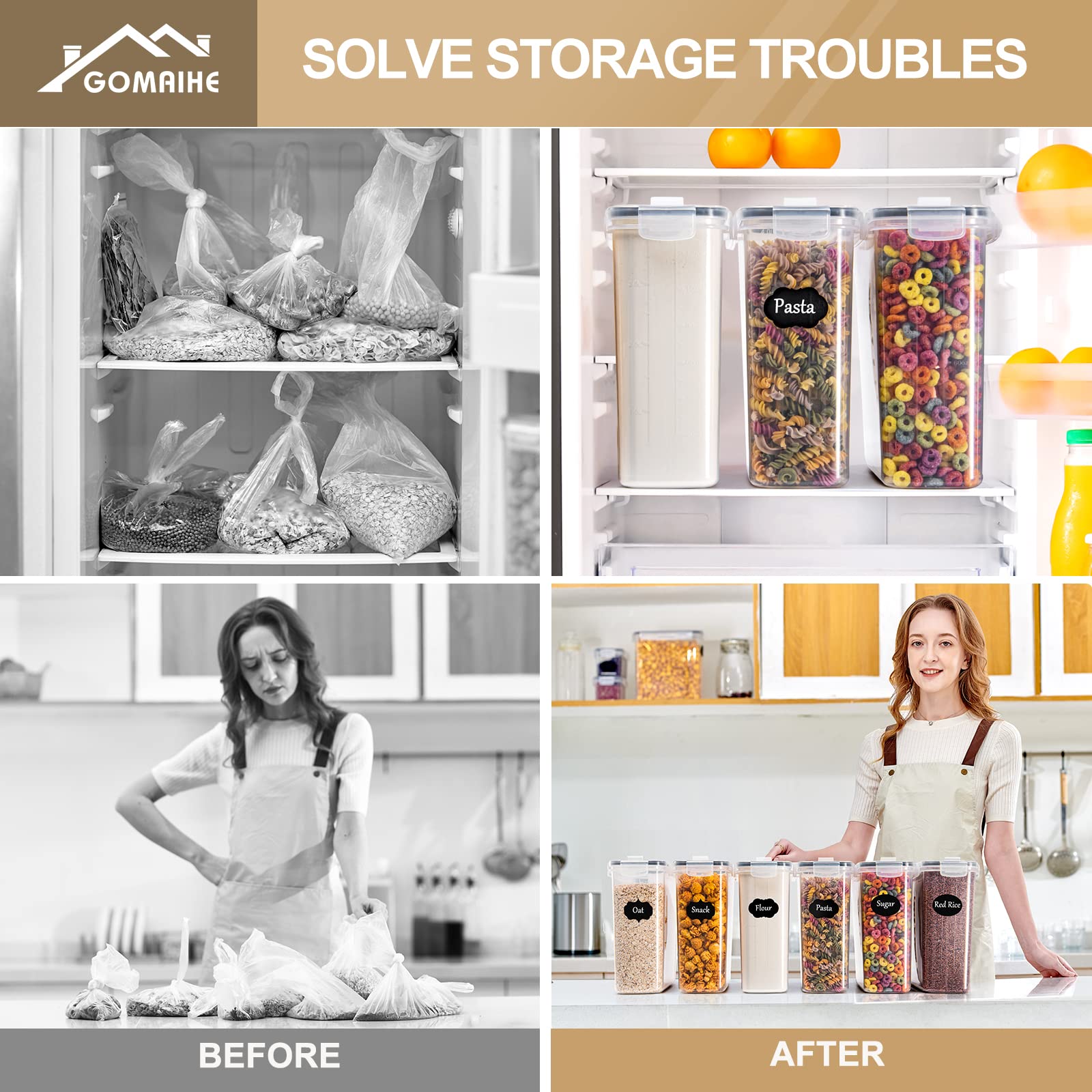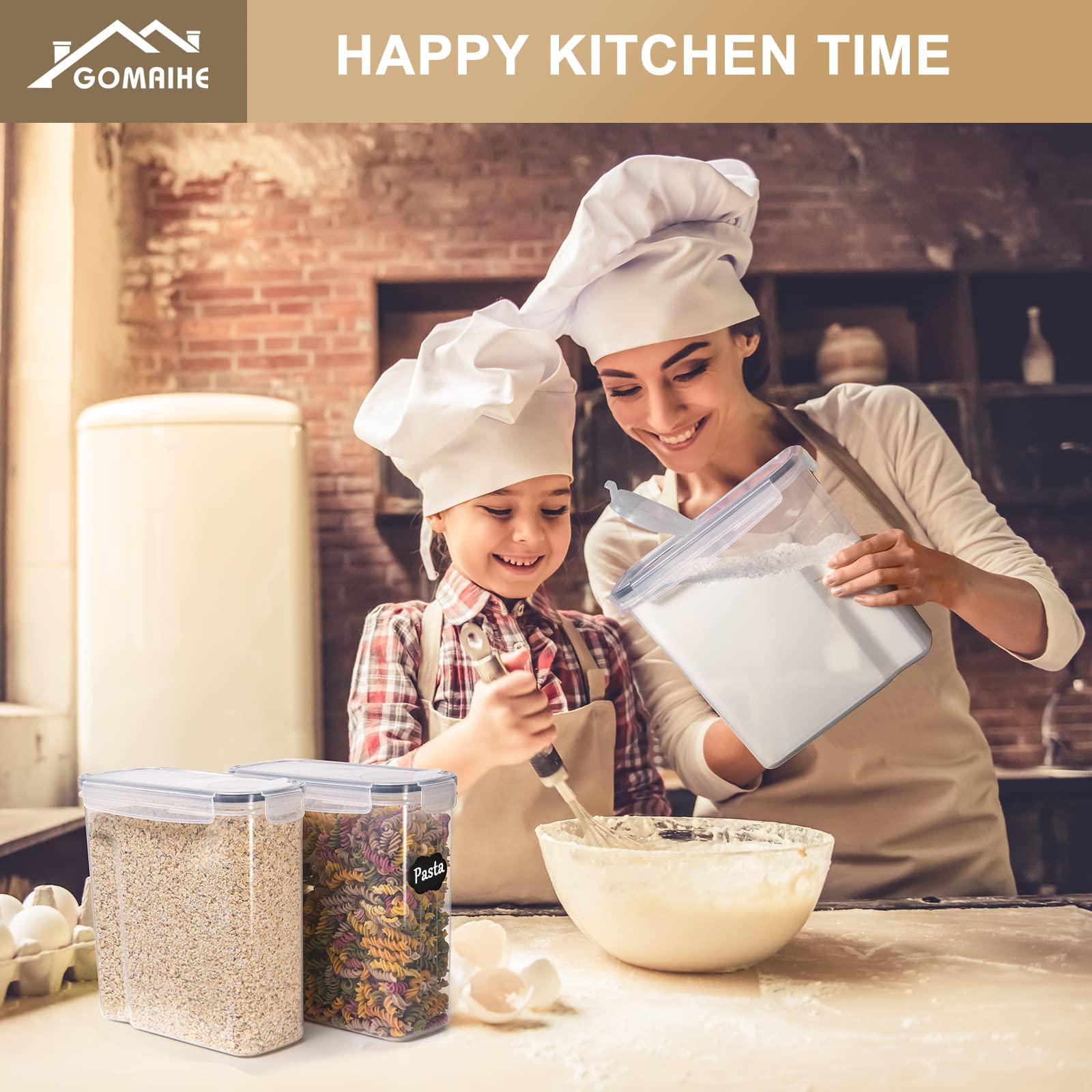 GoMaihe Vorratsdosen Set, 2.5L*6 Stück Aufbewahrungsbox Küche Organizer, Luftdicht Frischhaltedose Plastik mit Deckel, Vorratsbehälter zum Aufbewahrung von Müsli Mehl Kaffeebohnen Cornflakes Spaghetti