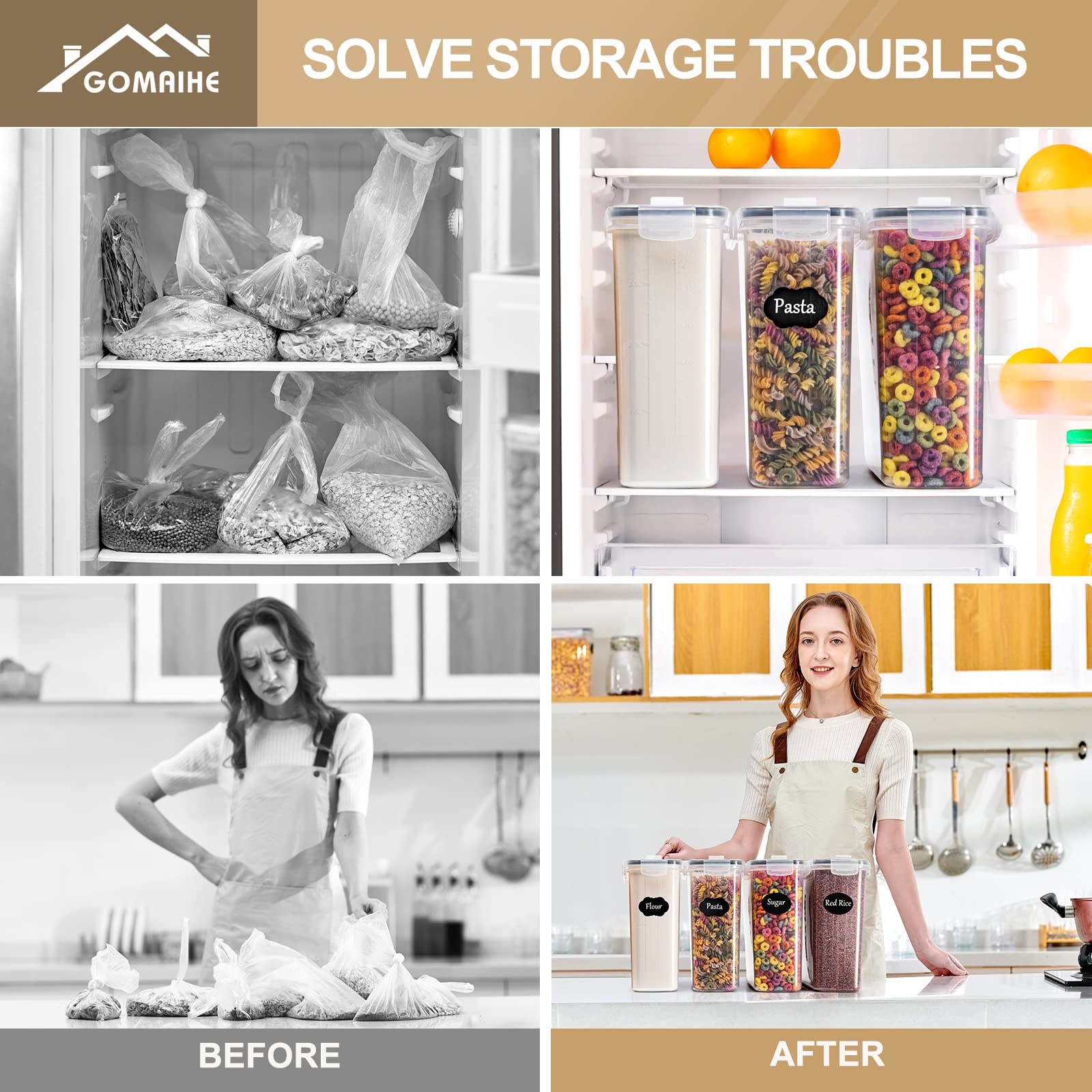 GoMaihe 4L Vorratsdosen 4 Set, Aufbewahrungsbox Küche Luftdicht Behälter aus Plastik Mit Deckel, Vorratsgläser zur Aufbewahrung von Nudeln, Müsli, Reis, Mehl, und für Futter Haustiere, MEHRWEG