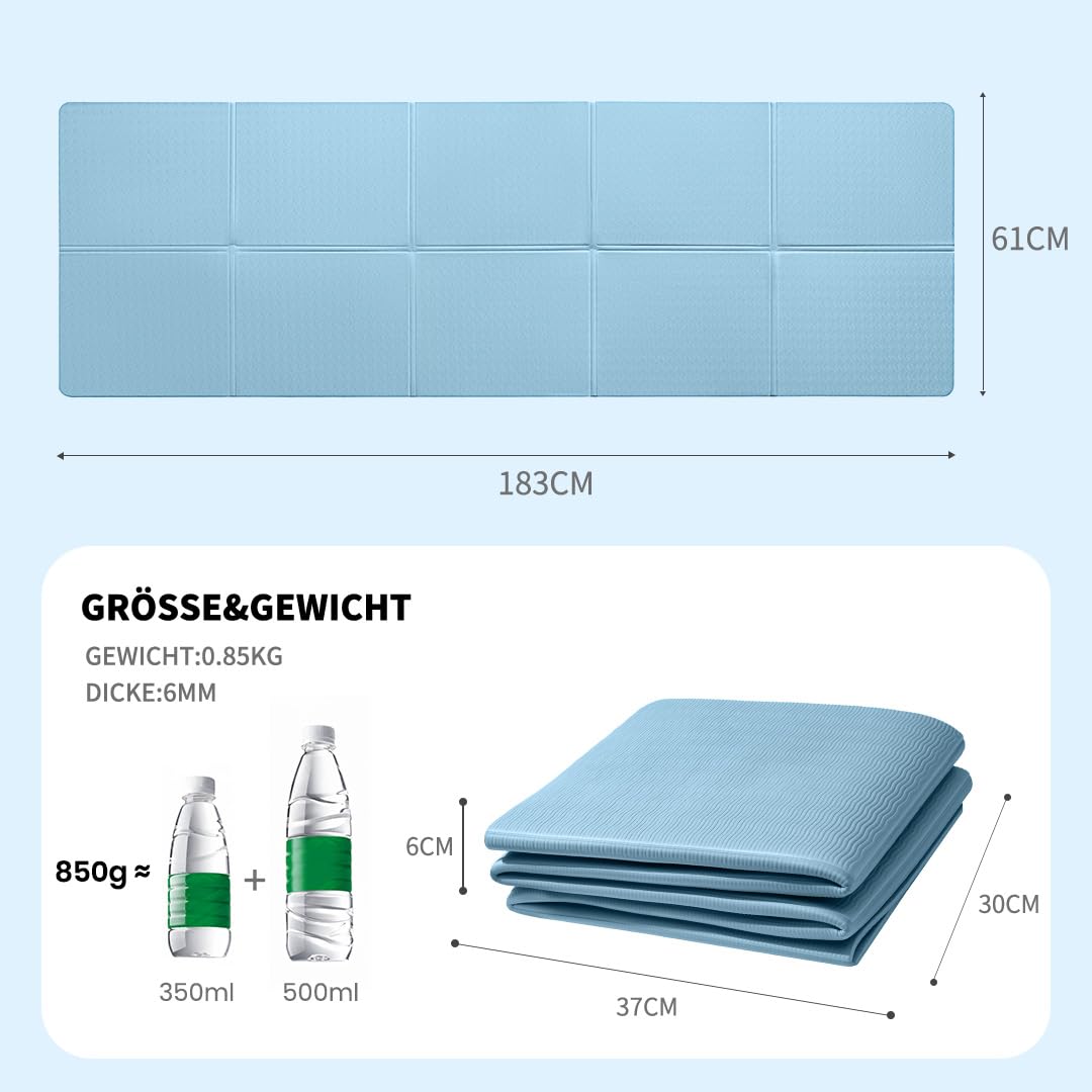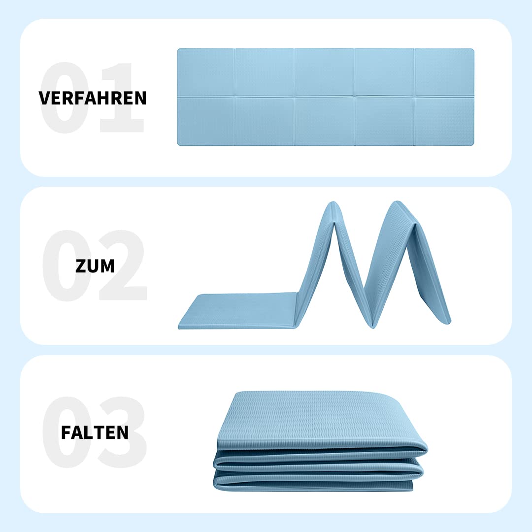 Good Nite Klappbare Yogamatte rutschfest Tragbare Fitnessmatte Faltbar Leicht Gymnastikmatte Pilates Sport Reiseyogamatte 183 x 61 x 0.6 cm (Blau)