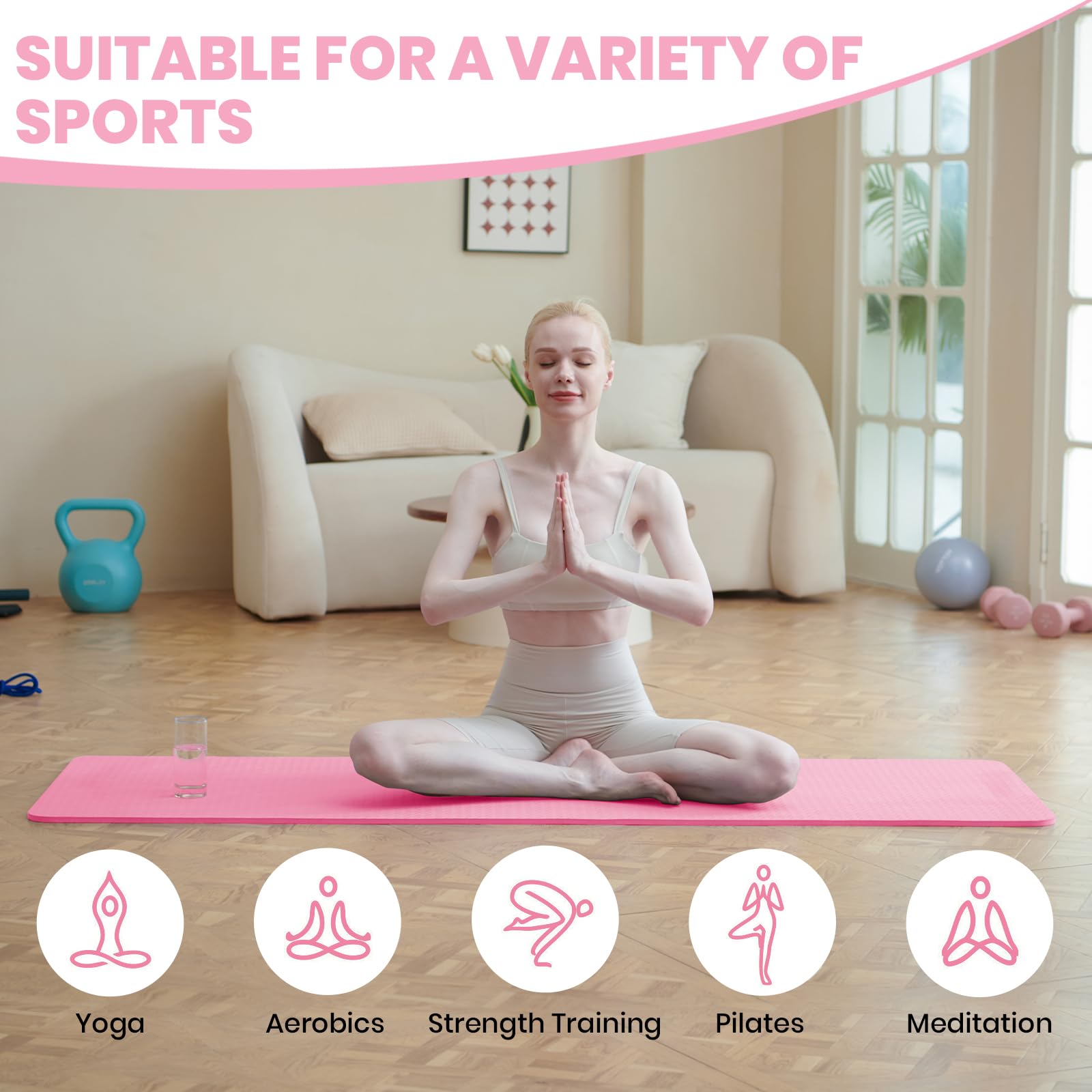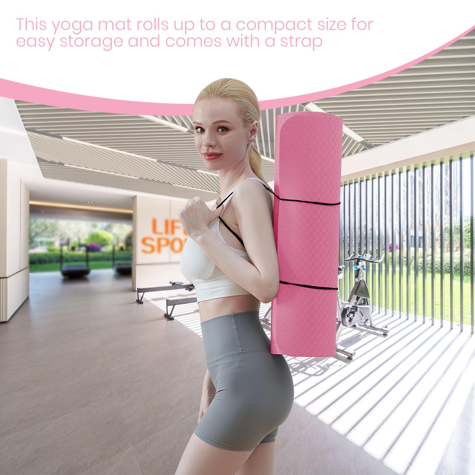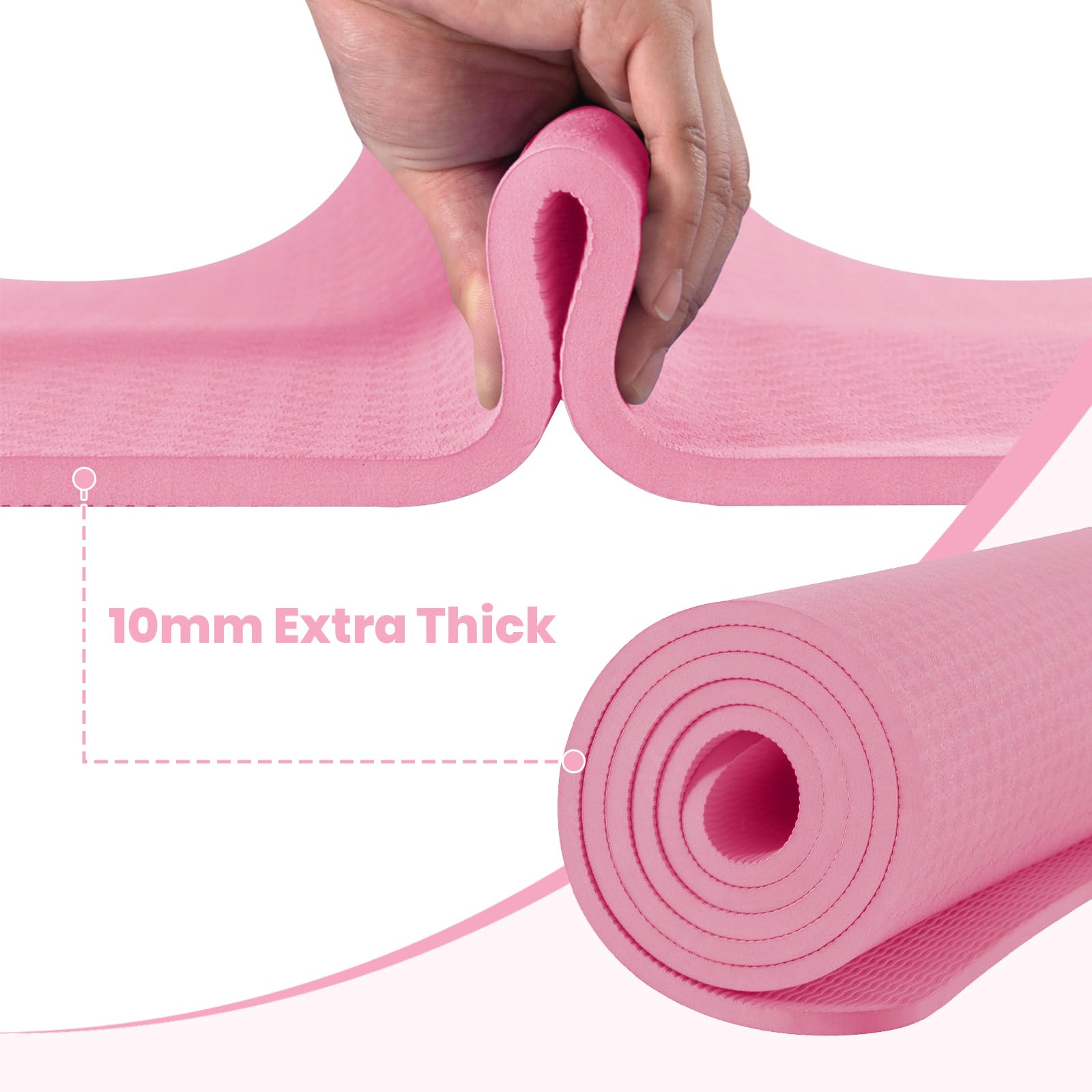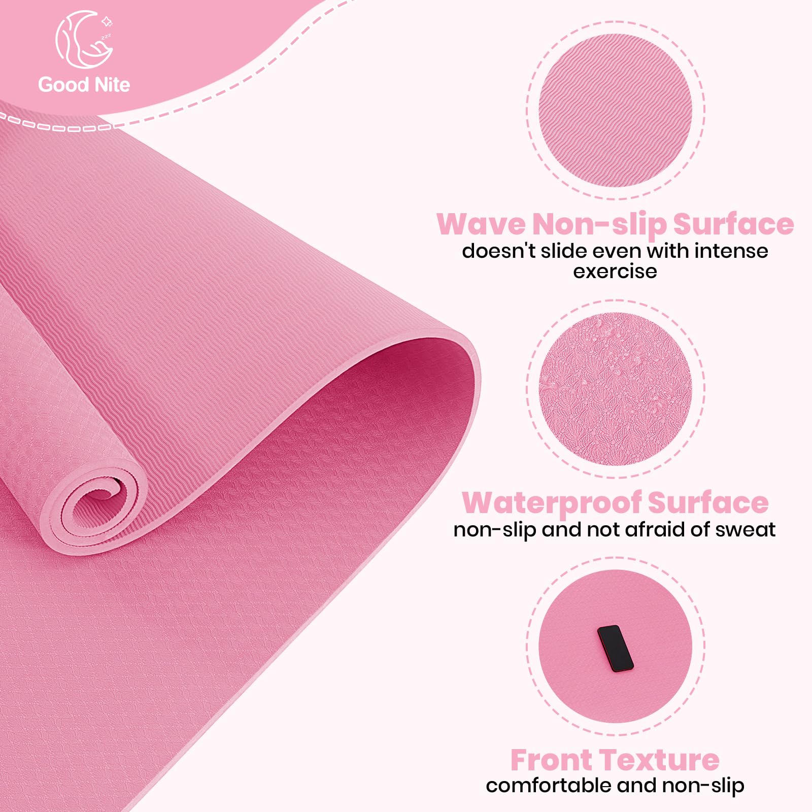Good Nite Yogamatten Für Frauen Rutschfeste Strukturierte Oberflächen Gymnastikmatte Yoga Matte Dicke 6 mm 10 mm Mit Tragegurt Tpe-Übungsmatte Für Yoga Pilates Gymnastik (183X61cm), Größe: 10 mm, Farbe: Rosa