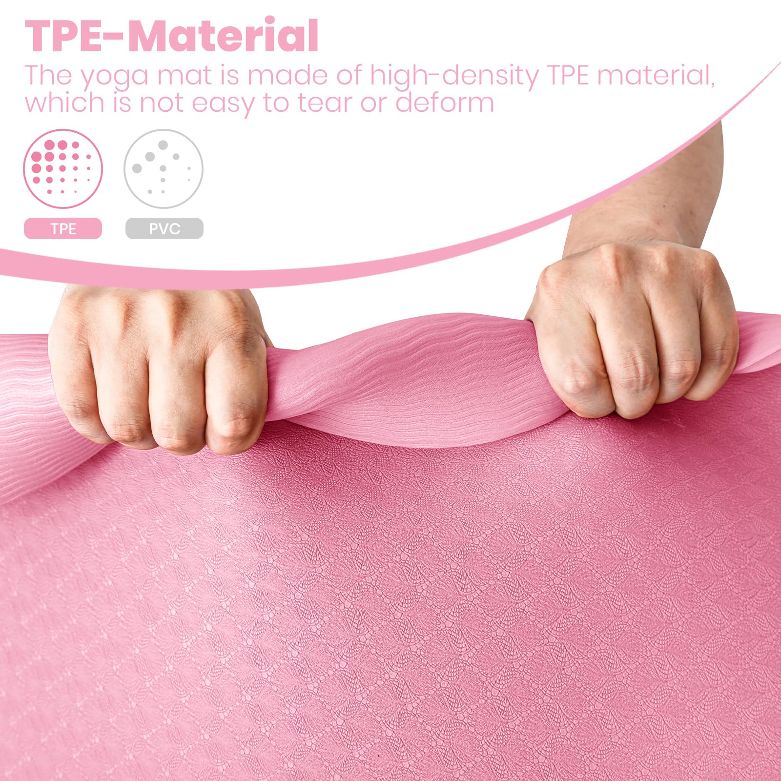 • 【Gesund sicher】Die 183 x 61 cm grossen Yogamatten sorgen für Komfort für alle Körpertypen. Erhältlich in 14 Farben, die Übungsmatte verwendet 6 mm TPE-Material, um mehr Dämpfung für unsere Wirbelsäule, Hüfte, Knie und Ellbogen zu bieten und ist perfekt für Dehnungen und freie Gewichte, so dass Sie problemlos jede Übung wie Sit-ups oder Liegestütze durchführen können.
