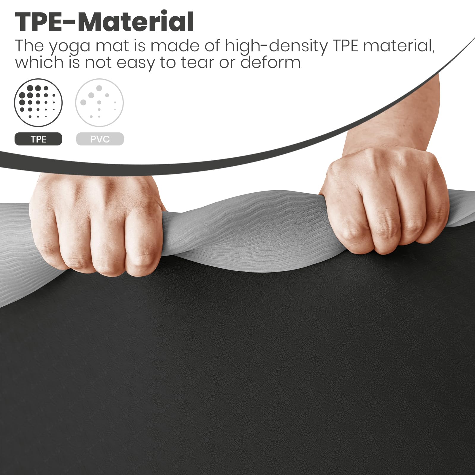 • 【Gesund sicher】Die 183 x 61 cm grossen Yogamatten sorgen für Komfort für alle Körpertypen. Erhältlich in 14 Farben, die Übungsmatte verwendet 6 mm dickes TPE-Material, um mehr Dämpfung für unsere Wirbelsäule, Hüfte, Knie und Ellbogen zu bieten und ist perfekt für Dehnungen und freie Gewichte, so dass Sie problemlos jede Übung wie Sit-ups oder Liegestütze durchführen können.