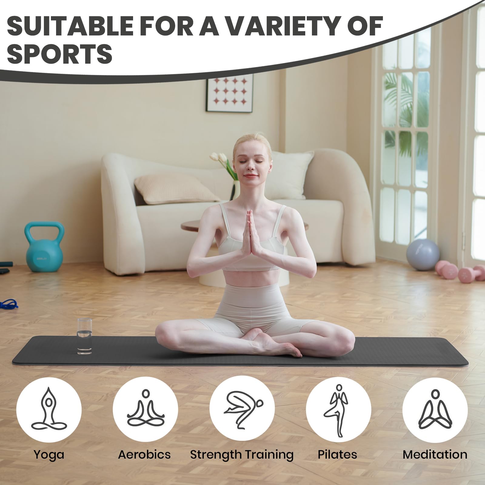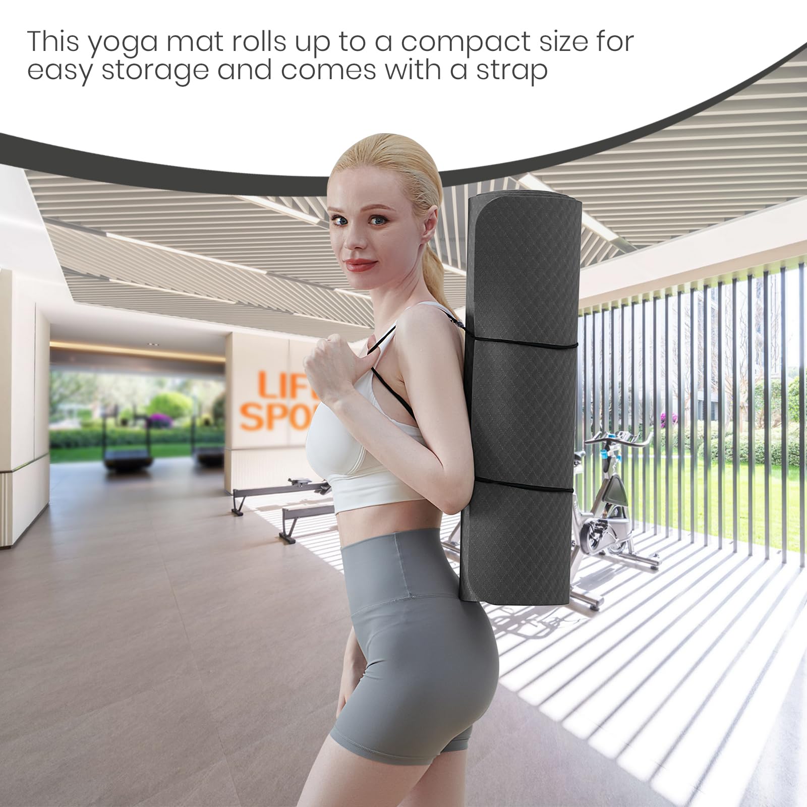 Good Nite Yogamatten Für Frauen Rutschfeste Strukturierte Oberflächen Gymnastikmatte Yoga Matte Dicke 6 mm 10 mm Mit Tragegurt Tpe-Übungsmatte Für Yoga Pilates Gymnastik (183X61cm), Größe: 10 mm, Farbe: Grau/Schwarz