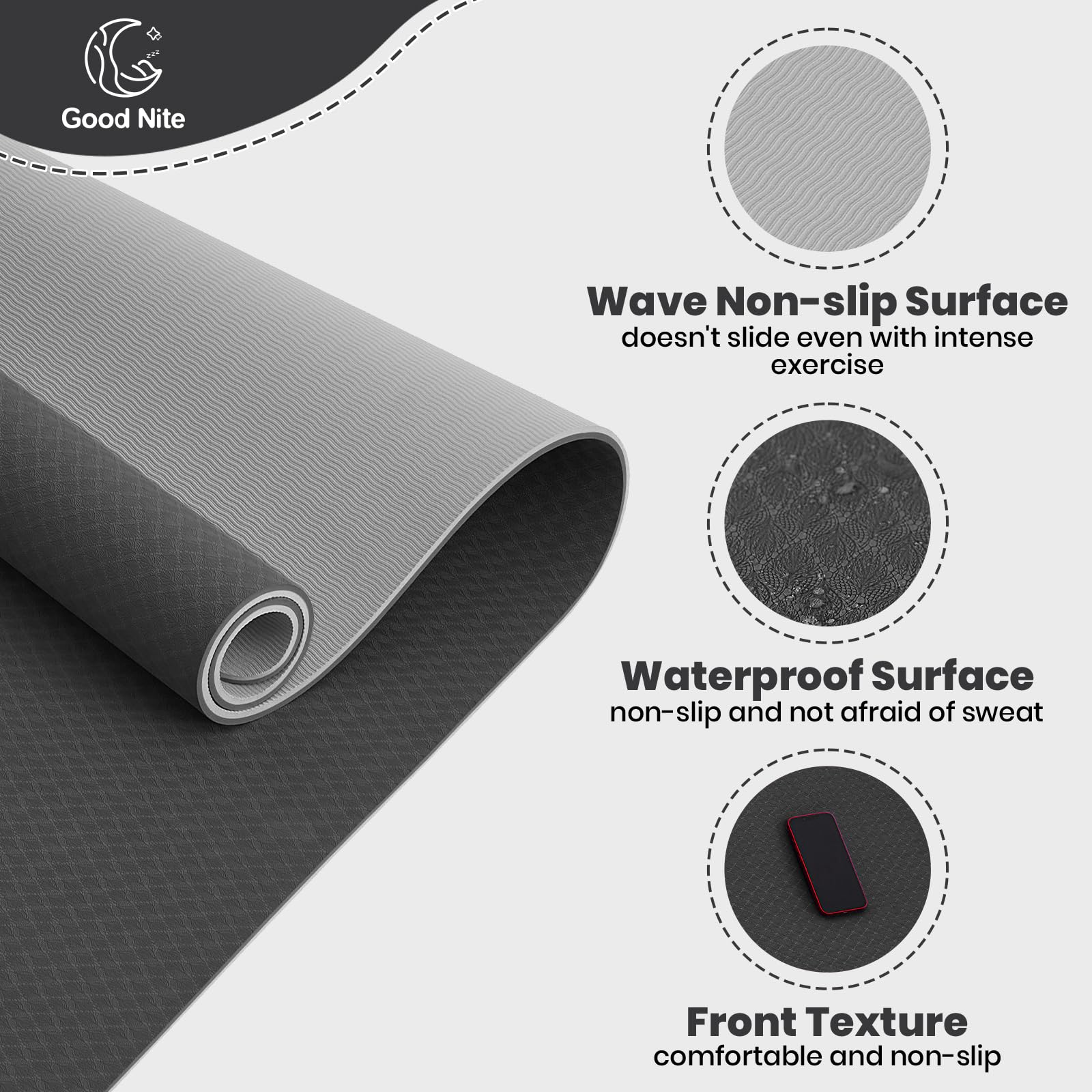 Good Nite Yogamatten Für Frauen Rutschfeste Strukturierte Oberflächen Gymnastikmatte Yoga Matte Dicke 6 mm 10 mm Mit Tragegurt Tpe-Übungsmatte Für Yoga Pilates Gymnastik (183X61cm)
