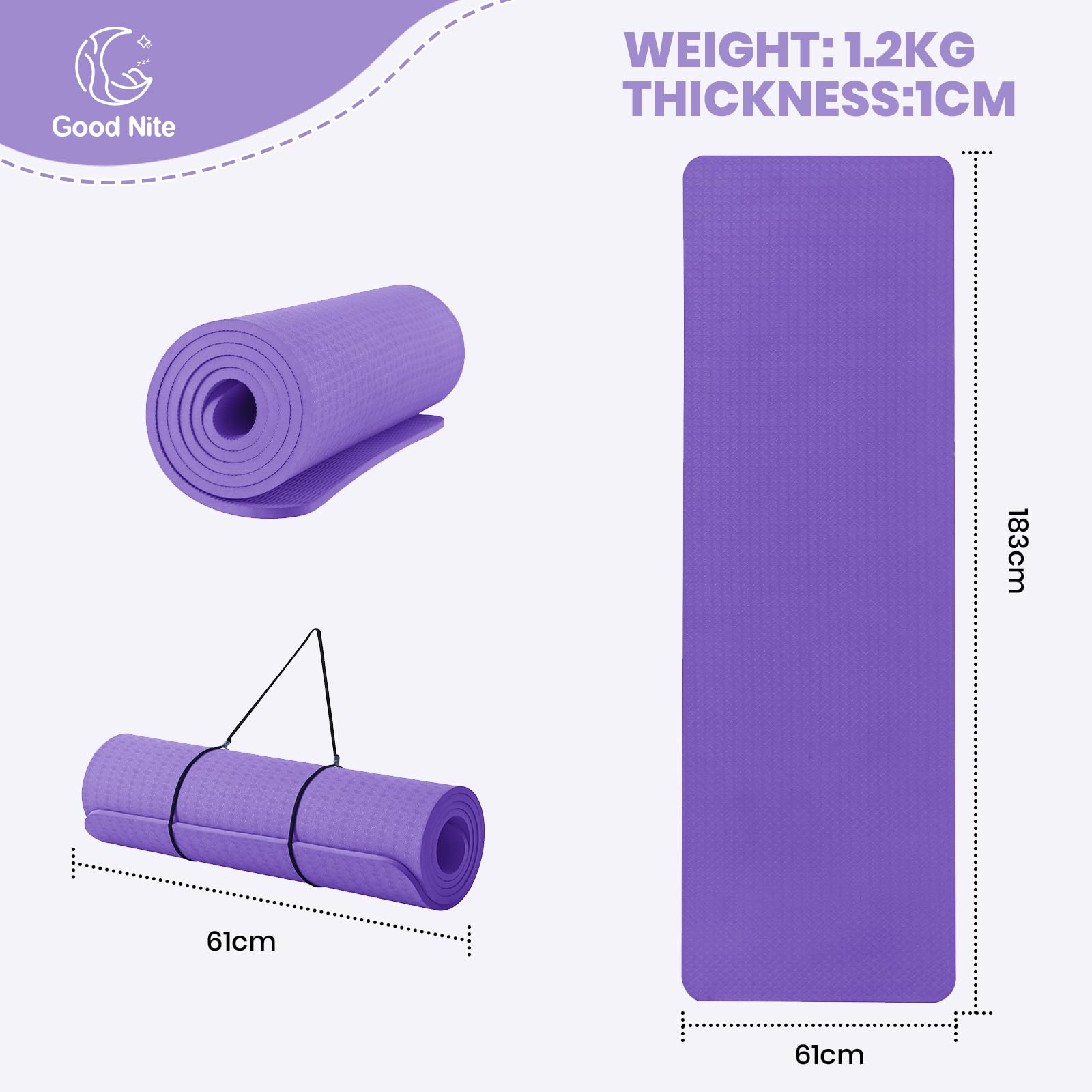 Good Nite Yogamatten Für Frauen Rutschfeste Strukturierte Oberflächen Gymnastikmatte Yoga Matte Dick 10mm Mit Tragegurt Tpe-Übungsmatte Für Yoga Pilates Gymnastik 183 x 61 x 1 cm