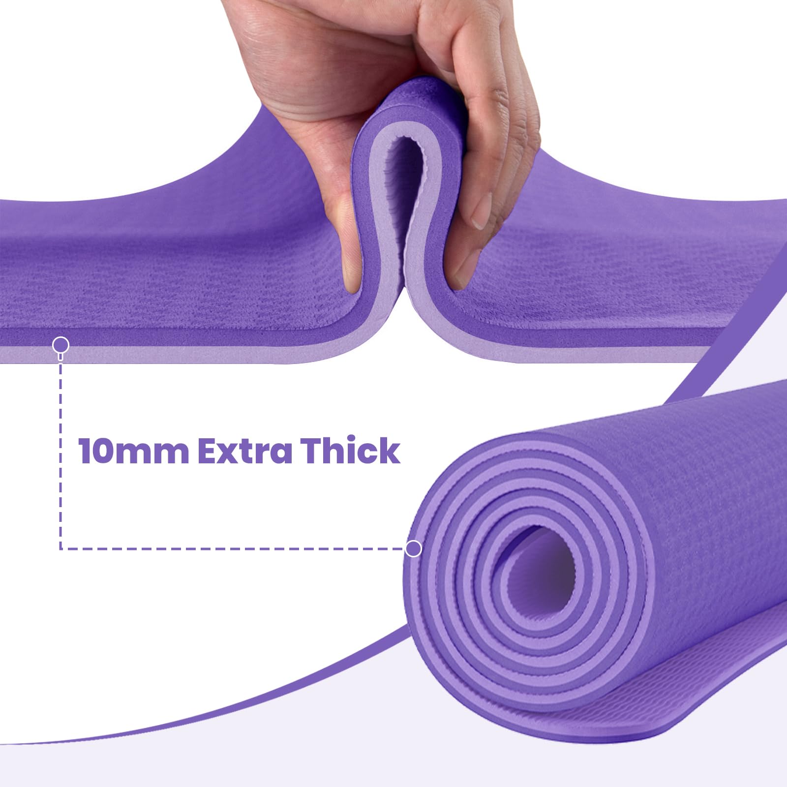 Good Nite Yogamatten Für Frauen Rutschfeste Strukturierte Oberflächen Gymnastikmatte Yoga Matte Dicke 6 mm 10 mm Mit Tragegurt Tpe-Übungsmatte Für Yoga Pilates Gymnastik (183X61cm), Größe: 10 mm, Farbe: Dunkellila/Helllila