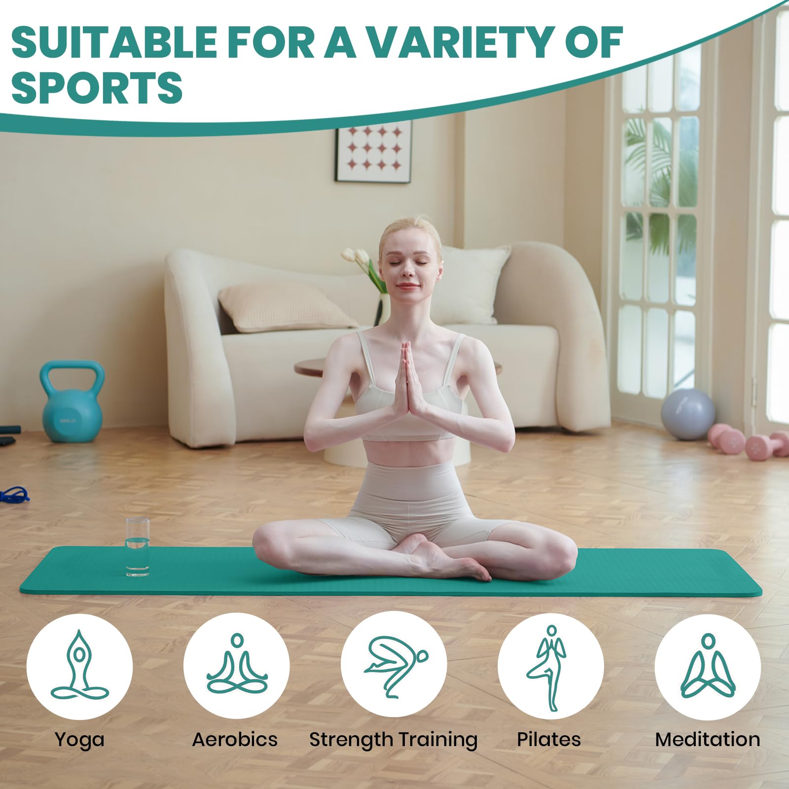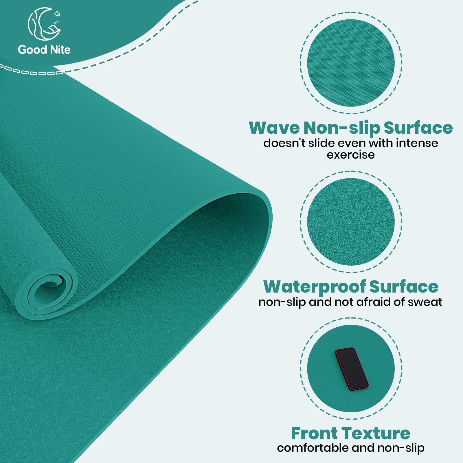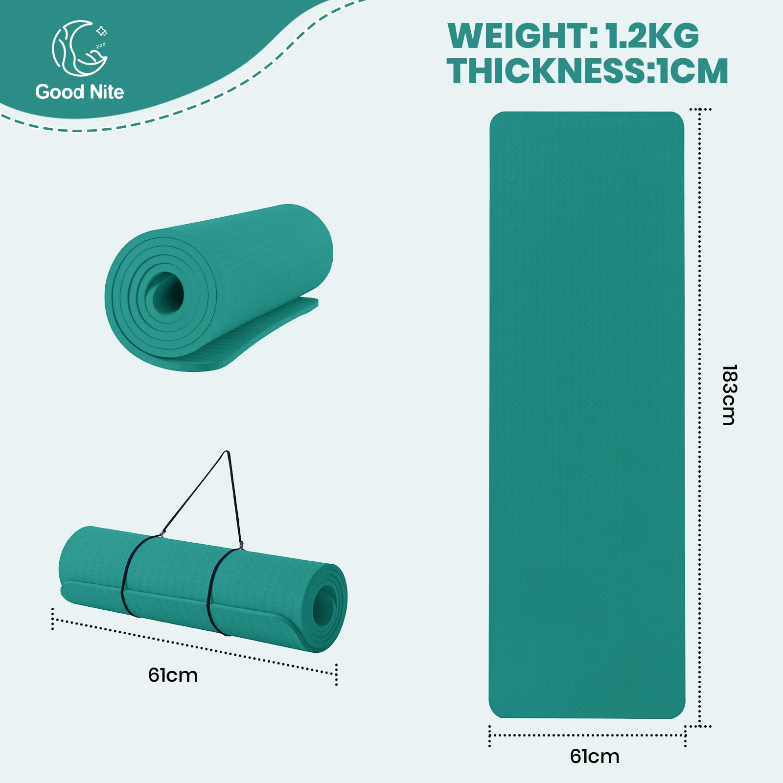 Good Nite Yogamatten Für Frauen Rutschfeste Strukturierte Oberflächen Gymnastikmatte Yoga Matte Dicke 6 mm 10 mm Mit Tragegurt Tpe-Übungsmatte Für Yoga Pilates Gymnastik (183X61cm), Größe: 10 mm, Farbe: Türkis