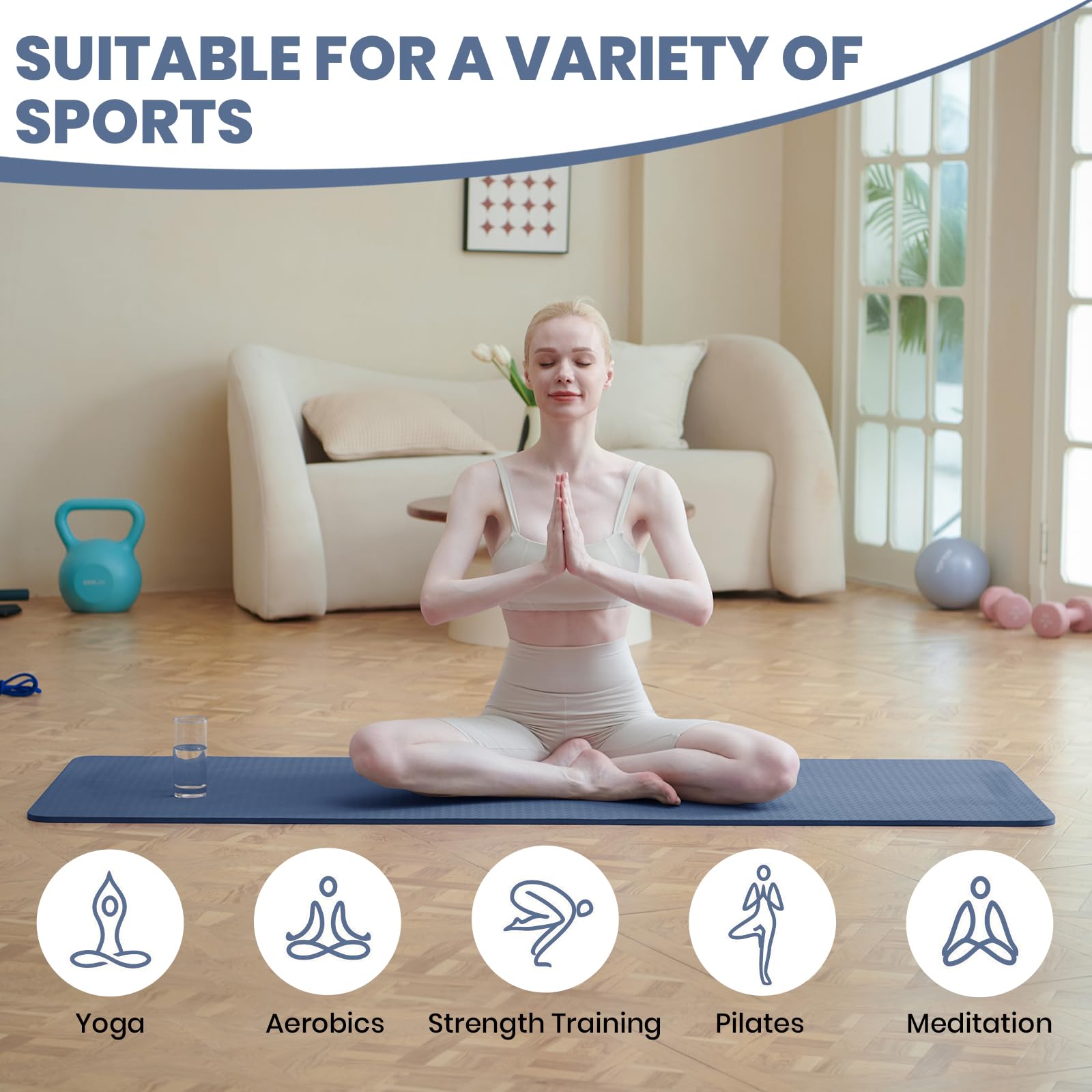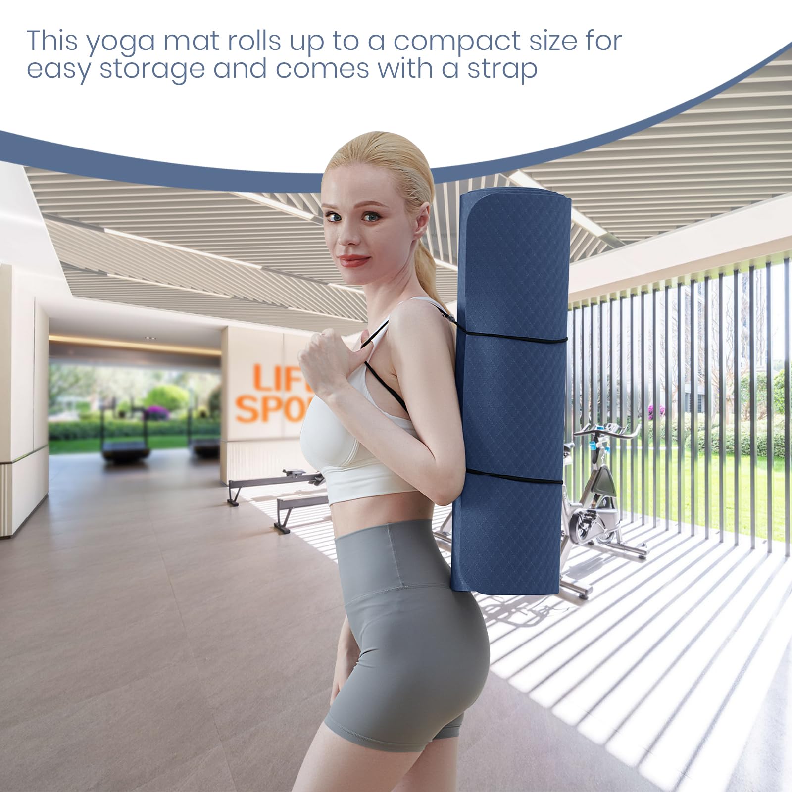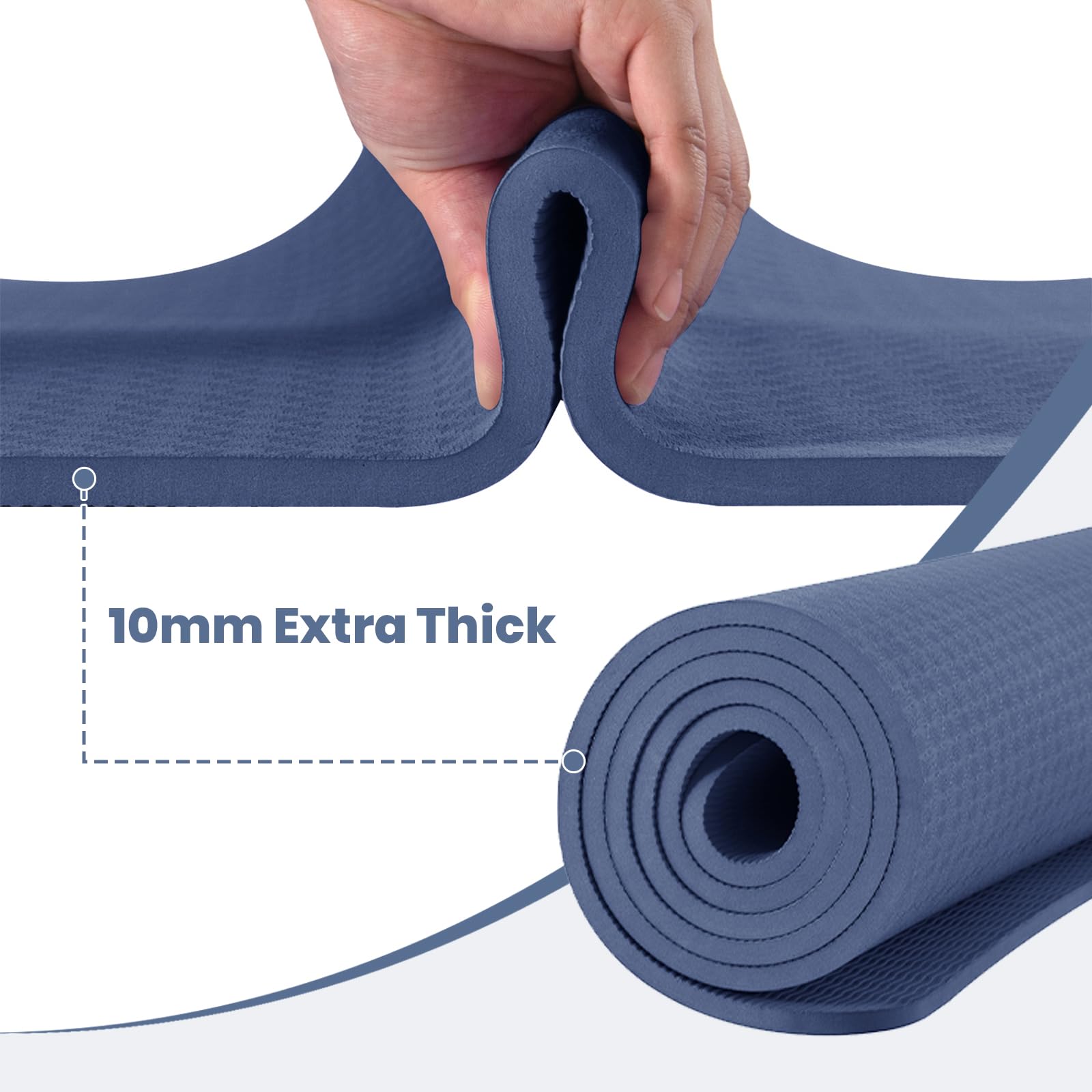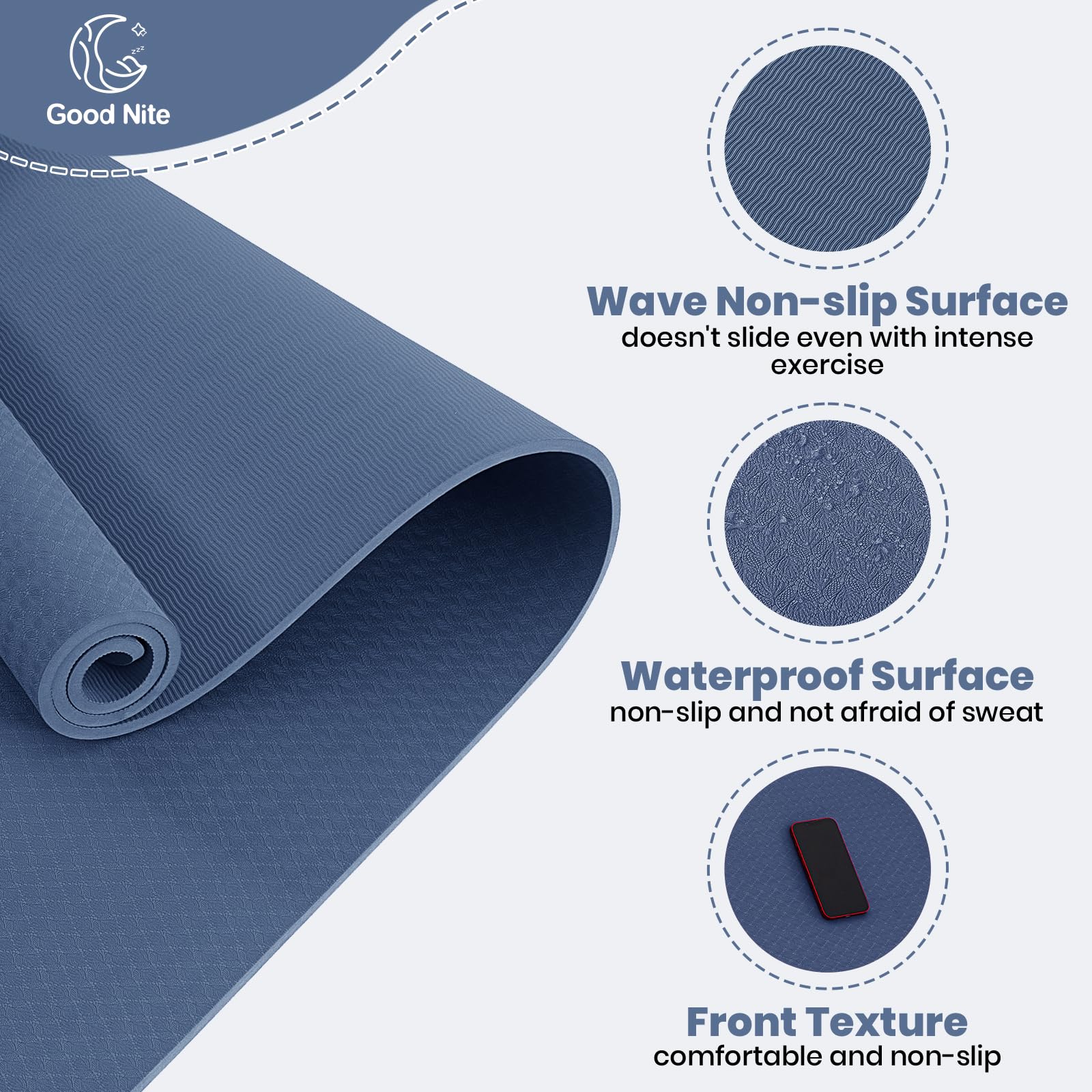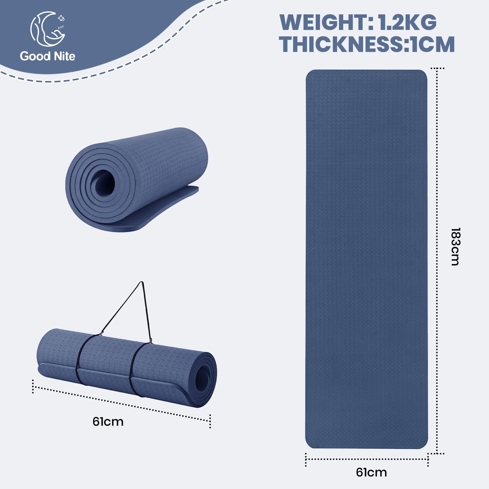 Good Nite Yogamatten Für Frauen Rutschfeste Strukturierte Oberflächen Gymnastikmatte Yoga Matte Dicke 6 mm 10 mm Mit Tragegurt Tpe-Übungsmatte Für Yoga Pilates Gymnastik (183X61cm), Größe: 10 mm, Farbe: Marine
