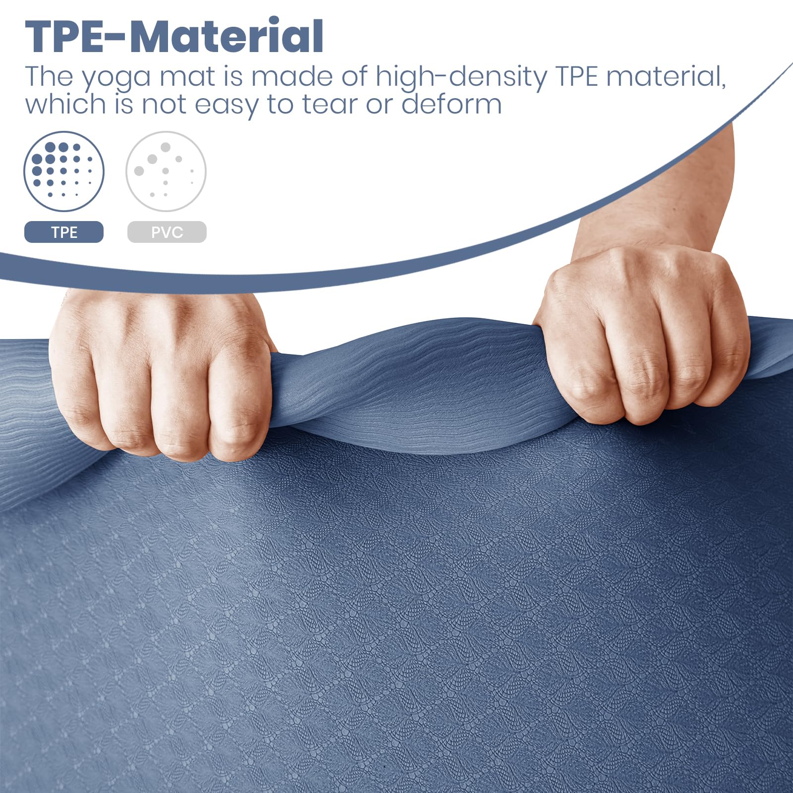• 【Gesund sicher】Die 183 x 61 cm grossen Yogamatten sorgen für Komfort für alle Körpertypen. Erhältlich in 14 Farben, die Übungsmatte verwendet 6 mm dickes TPE-Material, um mehr Dämpfung für unsere Wirbelsäule, Hüfte, Knie und Ellbogen zu bieten und ist perfekt für Dehnungen und freie Gewichte, so dass Sie problemlos jede Übung wie Sit-ups oder Liegestütze durchführen können.