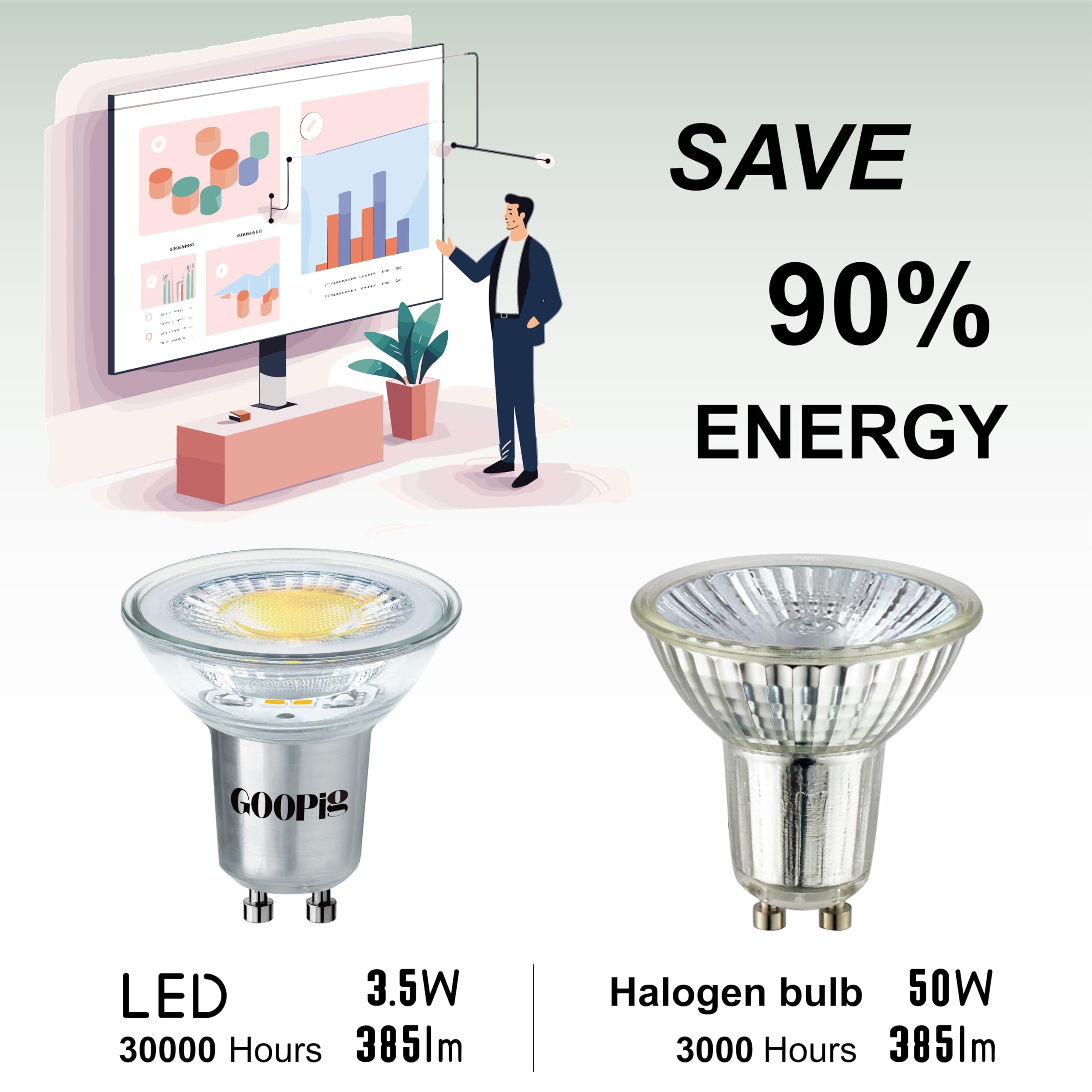 Goopig GU10 LED Lampe 4000K Neutralweiss 3.5W Ersetzt 50W Halogen Glühbirne, 6er-Pack, 385lm AC 230V Leuchtmittel, Flimmerfrei 38° Strahler, Nicht Dimmbar Reflektorlampe, Abstrahlwinkel-360° Birnen