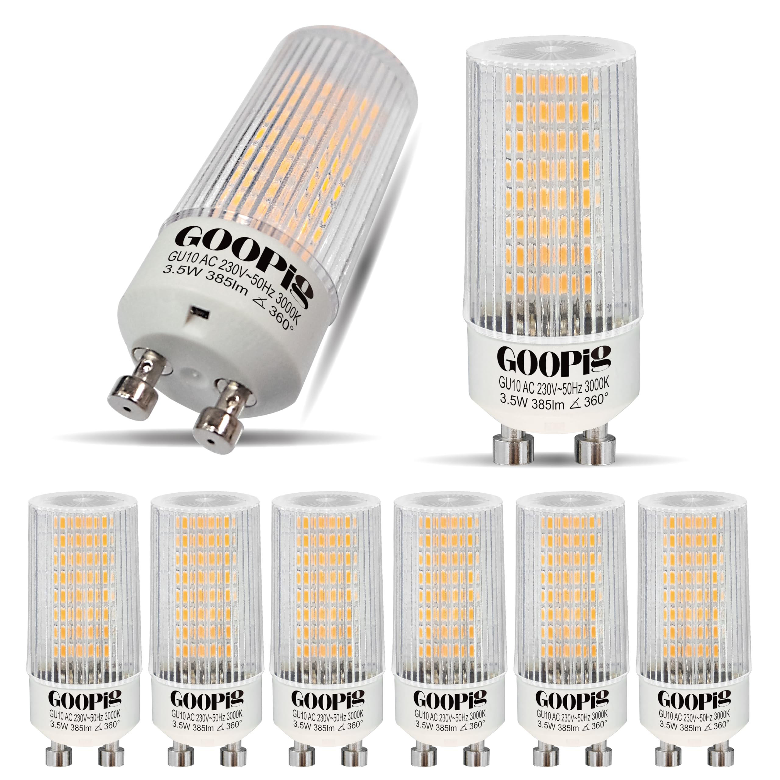 Goopig GU10 LED Lampen Mais 3,5W Warmweiss 3000K Ersetzt 50W, 6er Pack, 385lm Leuchtmittel, Flimmerfrei, Nicht Dimmbar T22 Klar Zylinder Form lampen, Abstrahlwinkel 360° Birnen
