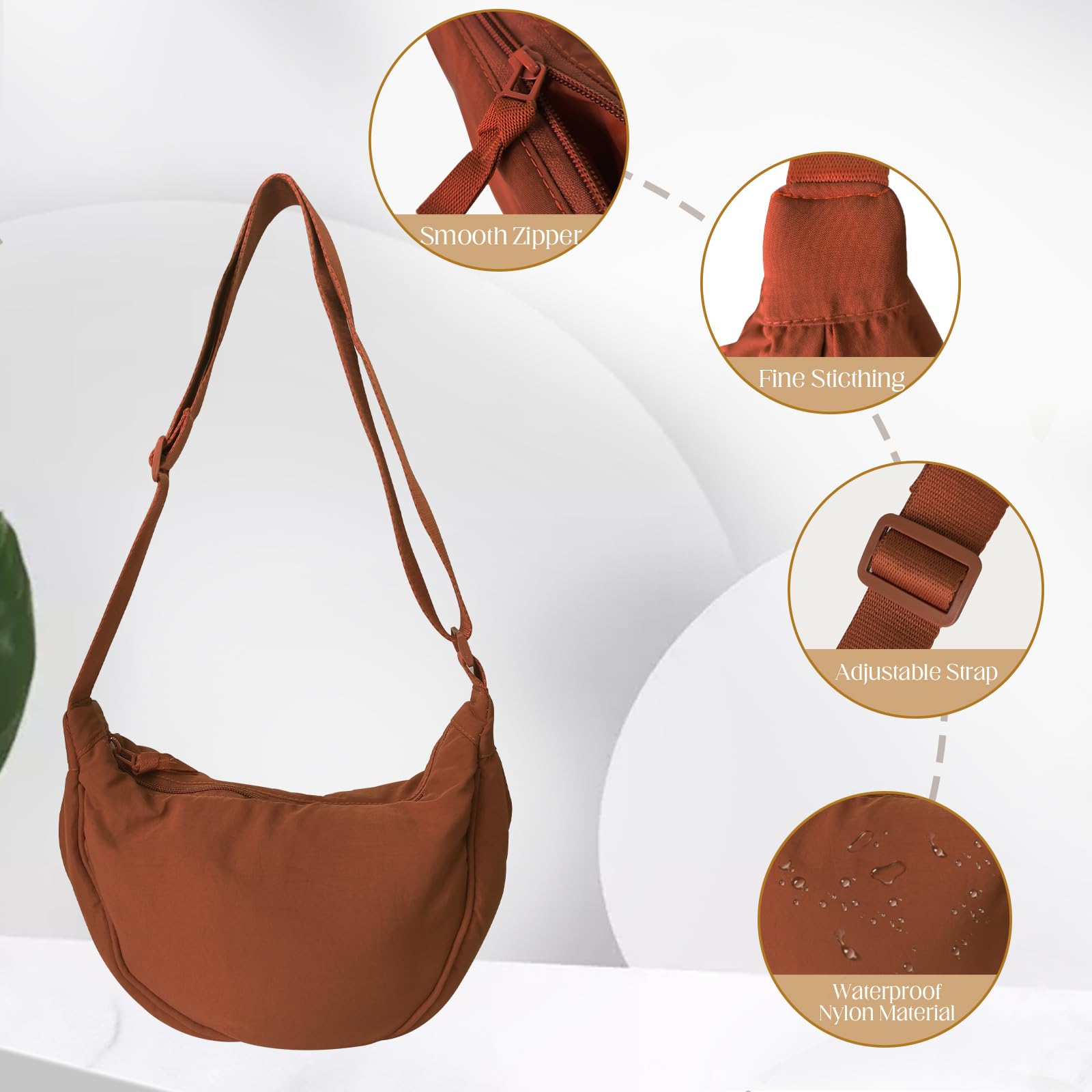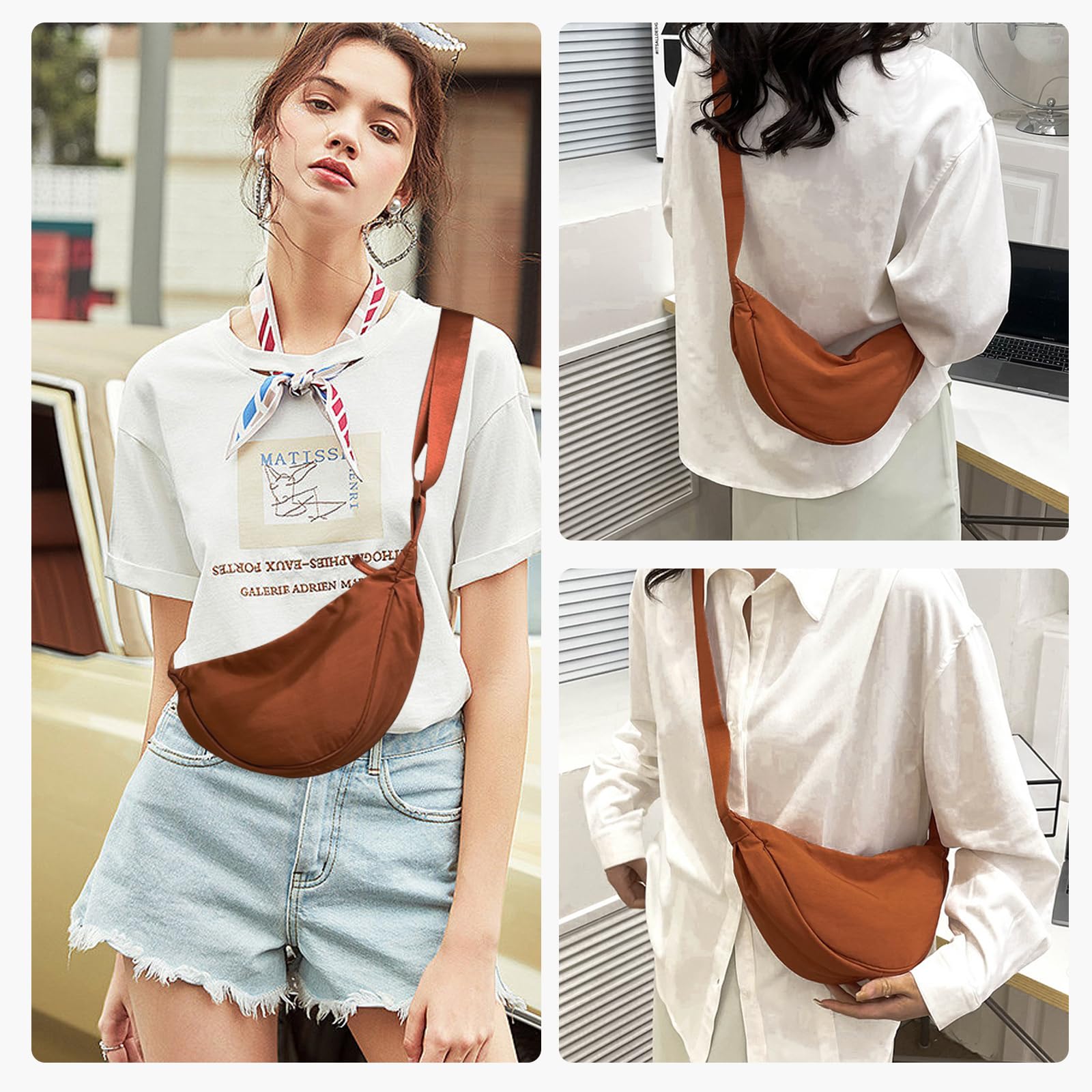 GoPaw Damen Halbmond Crossbody Schultertasche, Hobo Halfmoon Bag, Nylon Crossbody Bag Damen Halbmond Schultertasche mit verstellbarer Schultergurt, Einfarbige