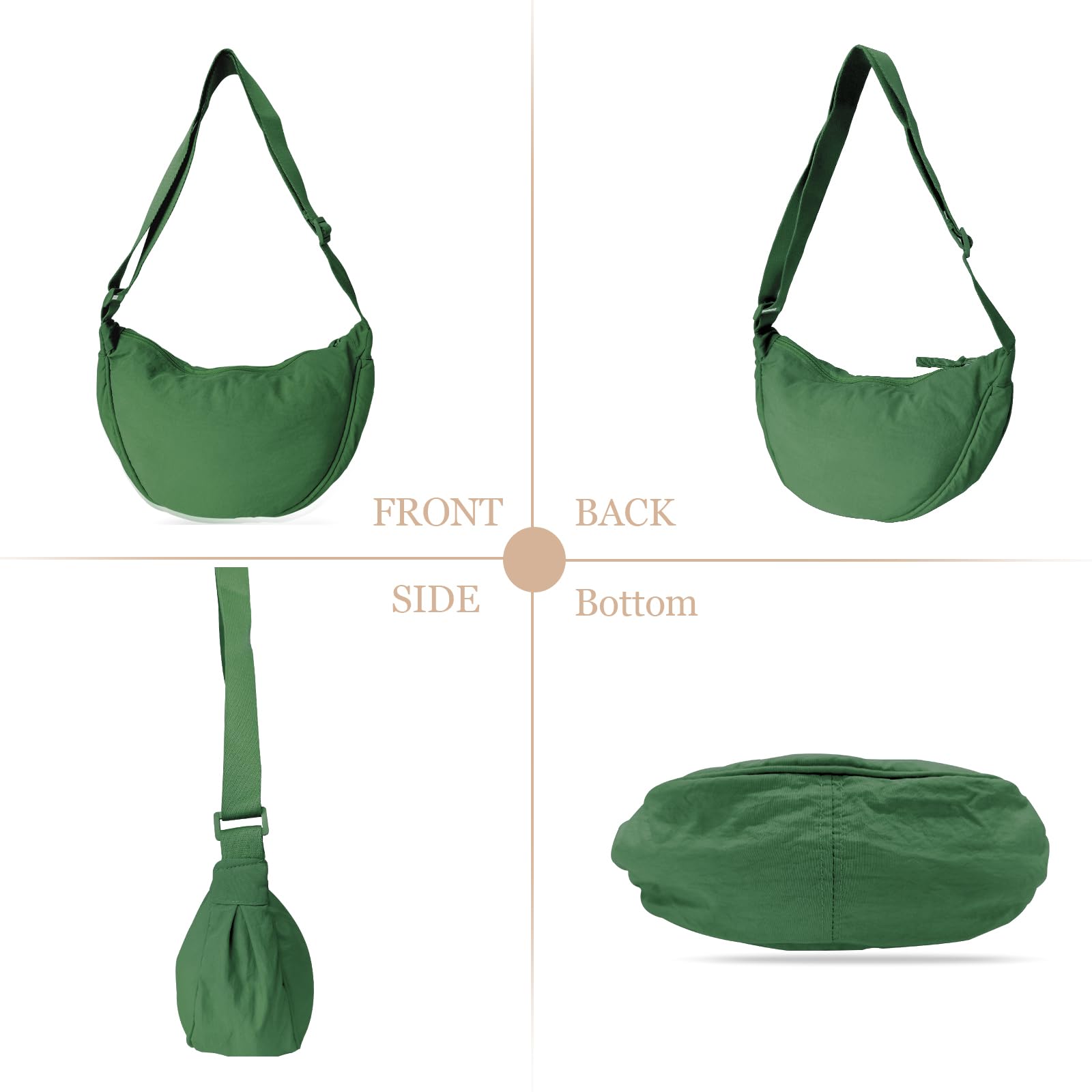 GoPaw Damen Halbmond Crossbody Schultertasche, Hobo Halfmoon Bag, Nylon Crossbody Bag Damen Halbmond Schultertasche mit verstellbarer Schultergurt, Einfarbige