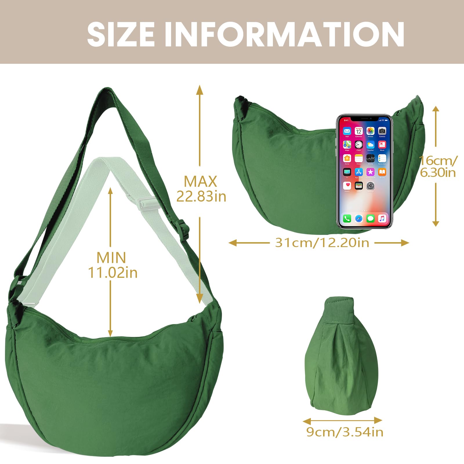 ✅Die Umhängetasche Hobos aus Nylon von Crescent Bags überzeugt durch Nützlichkeit und Stil, ist sowohl praktisch als auch multifunktional, passt zu jedem Kleidungsstil und ist für fast jeden Anlass geeignet. Eine ideale kleine Umhängetasche für Männer und Frauen, die es hassen, grosse Taschen zu tragen.