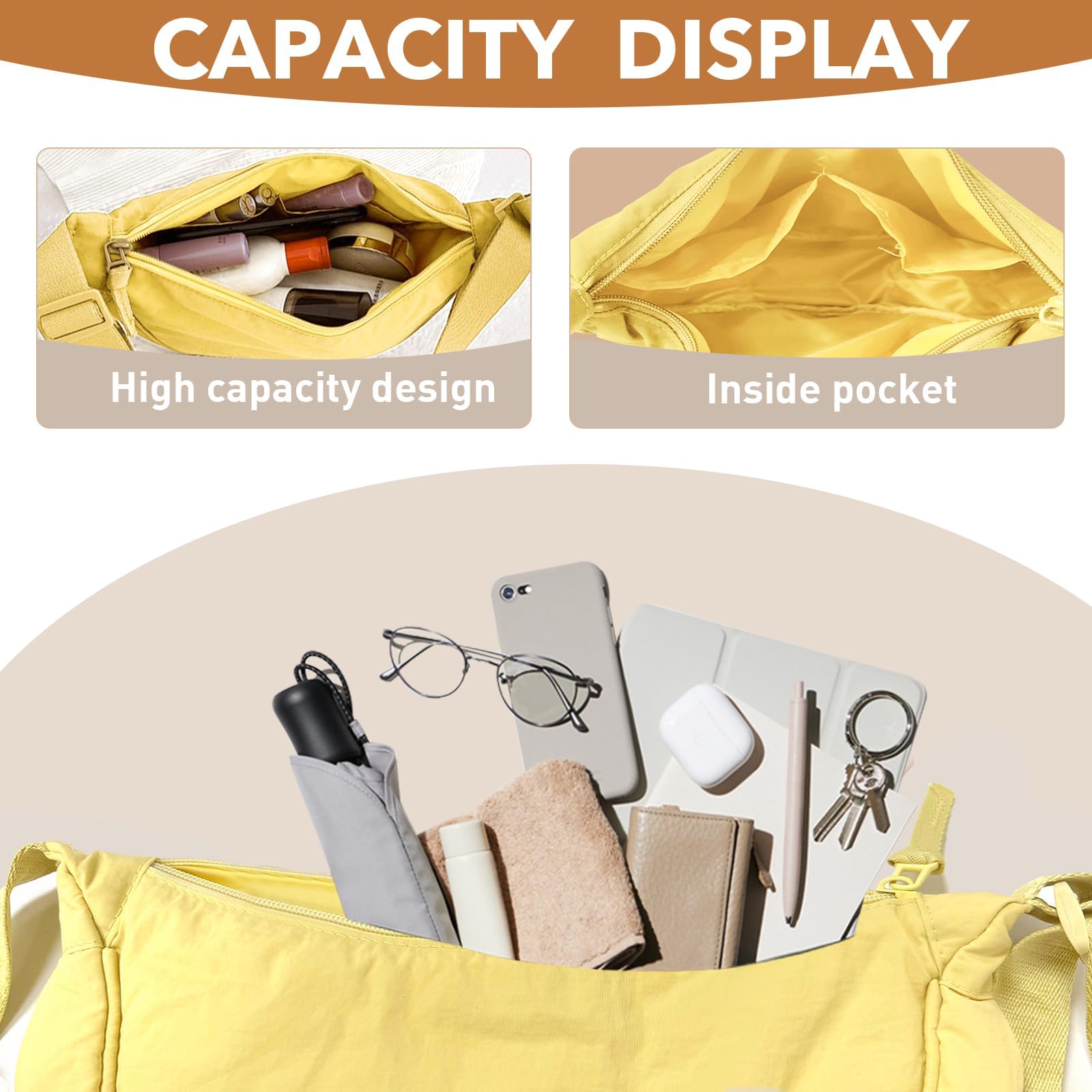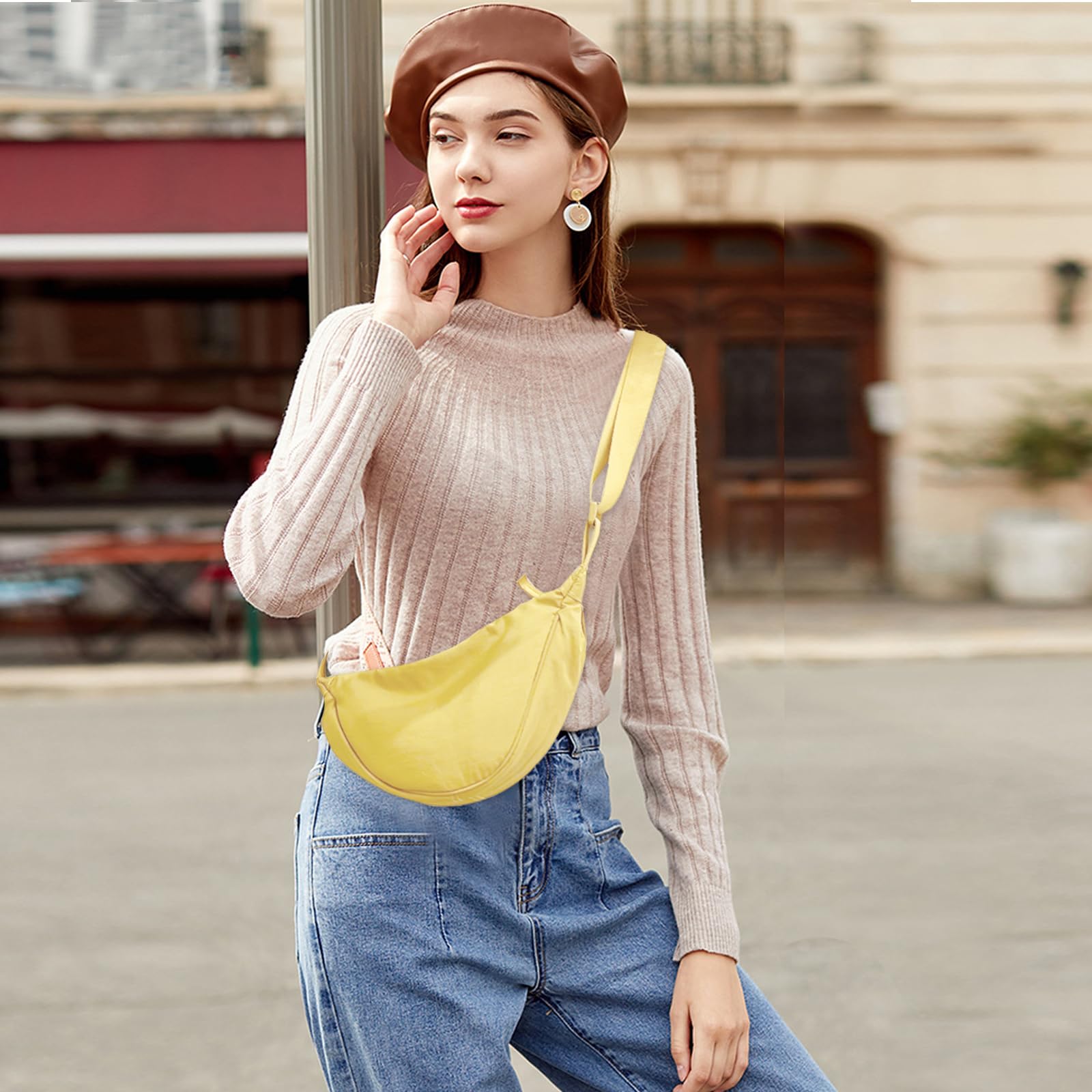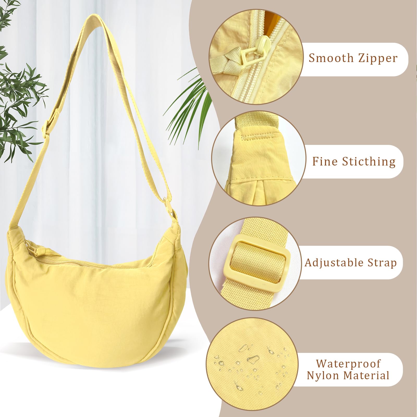 GoPaw Damen Halbmond Crossbody Schultertasche, Hobo Halfmoon Bag, Nylon Crossbody Bag Damen Halbmond Schultertasche mit verstellbarer Schultergurt, Einfarbige