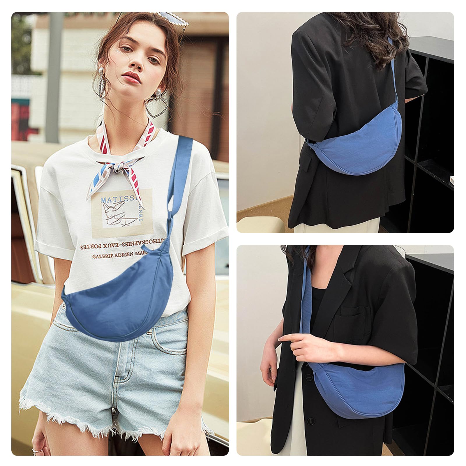 GoPaw Damen Halbmond Crossbody Schultertasche, Hobo Halfmoon Bag, Nylon Crossbody Bag Damen Halbmond Schultertasche mit verstellbarer Schultergurt, Einfarbige