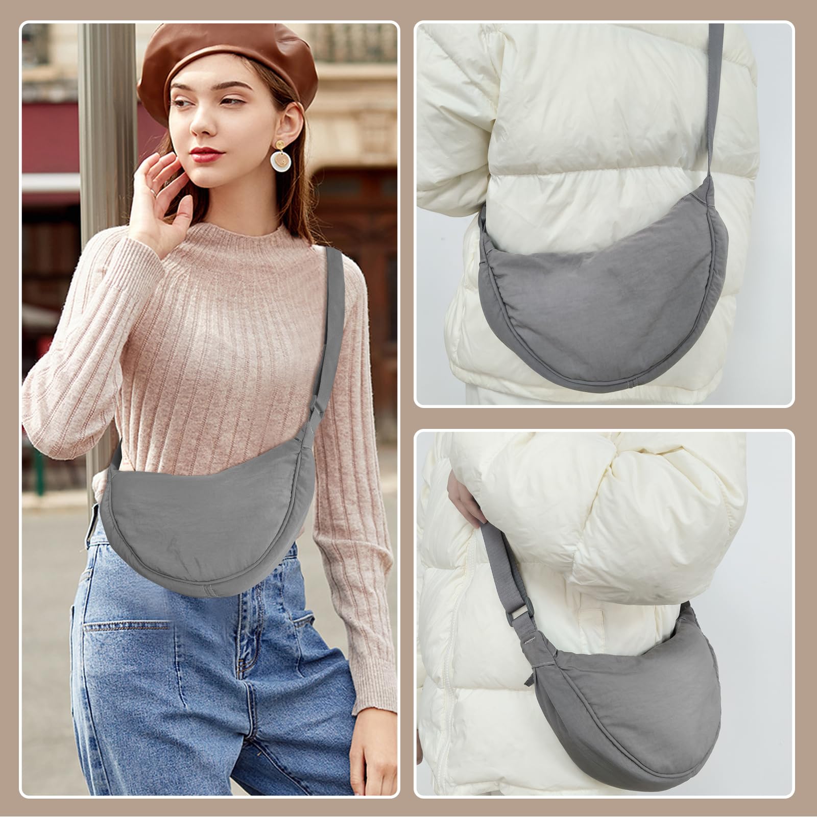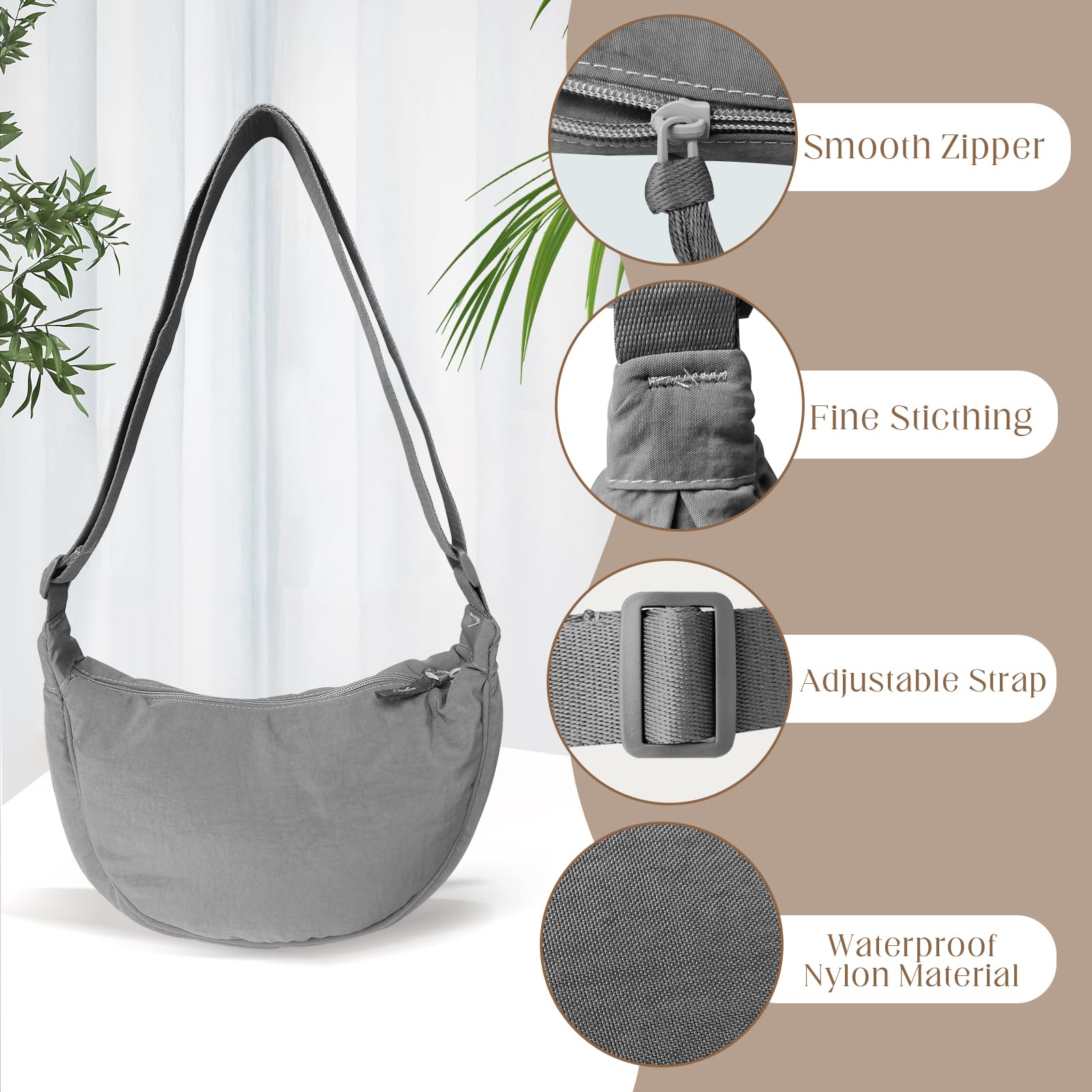GoPaw Damen Halbmond Crossbody Schultertasche, Hobo Halfmoon Bag, Nylon Crossbody Bag Damen Halbmond Schultertasche mit verstellbarer Schultergurt, Einfarbige