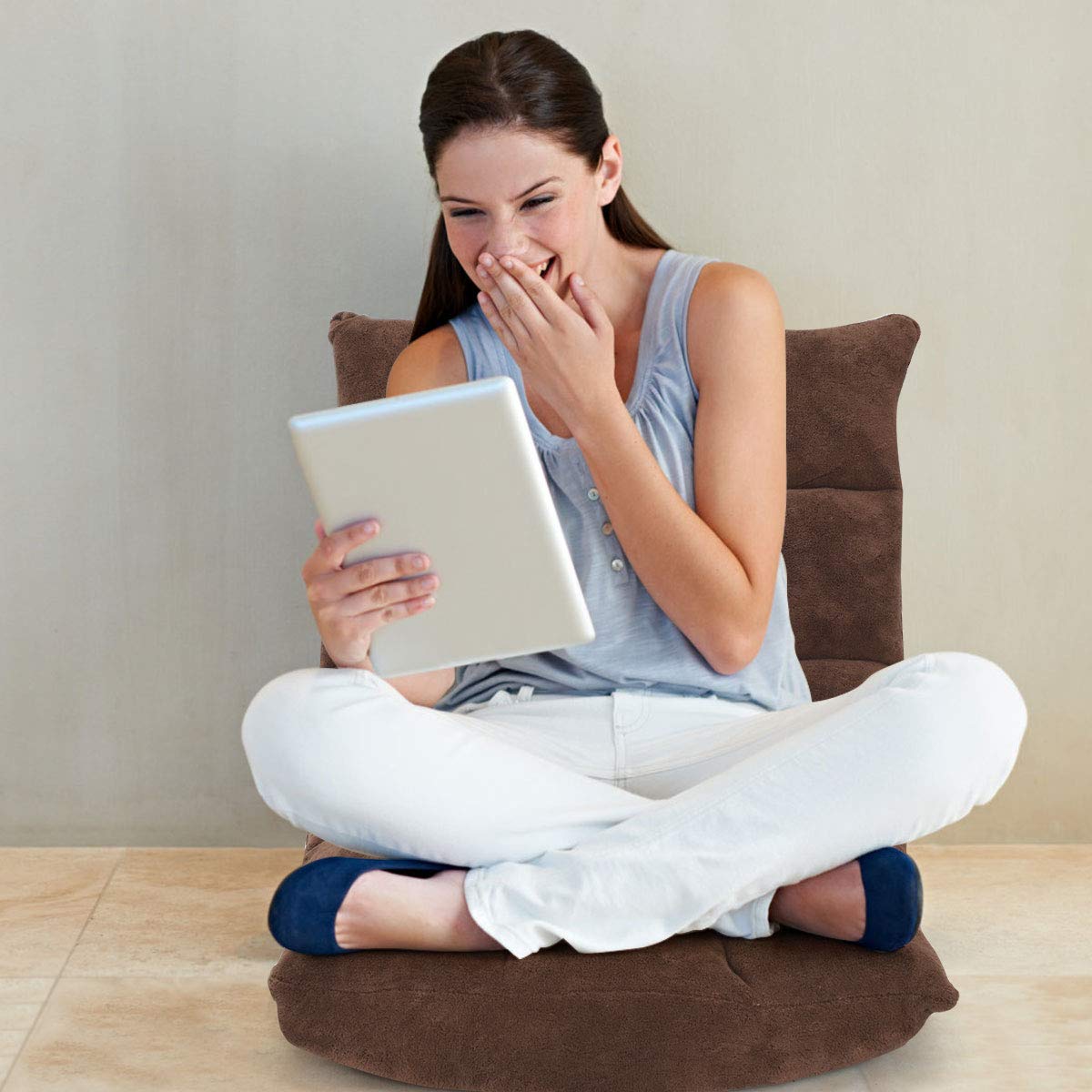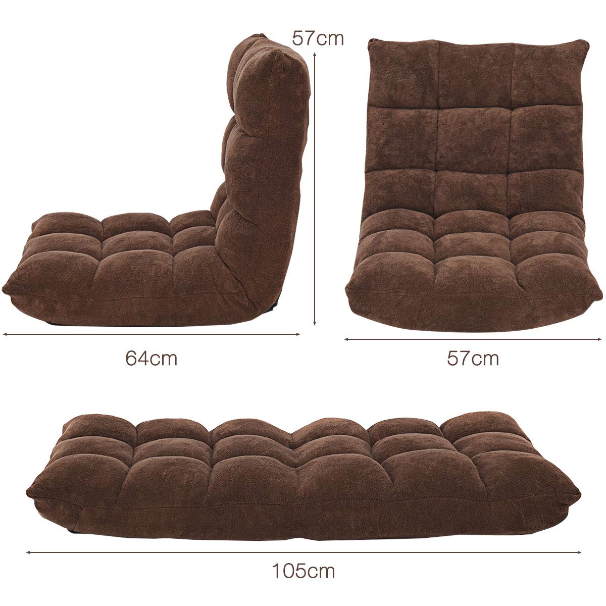 GOPLUS Bodenstuhl, Bodensofa mit Rückenlehne, Bodensessel mit Schlaffunktion, Floor Chair, Lazy Sofa, Meditationsstuhl für Wohnzimmer & Balkon (Braun)