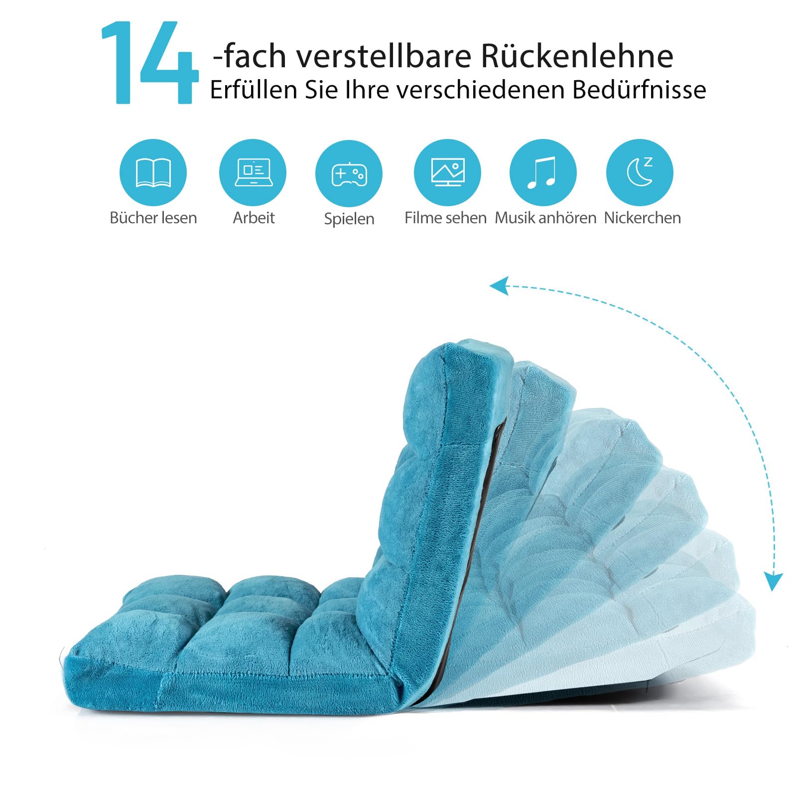 GOPLUS Bodenstuhl, Bodensofa mit Rückenlehne, Bodensessel mit Schlaffunktion, Floor Chair, Lazy Sofa, Meditationsstuhl für Wohnzimmer & Balkon (Türkis)