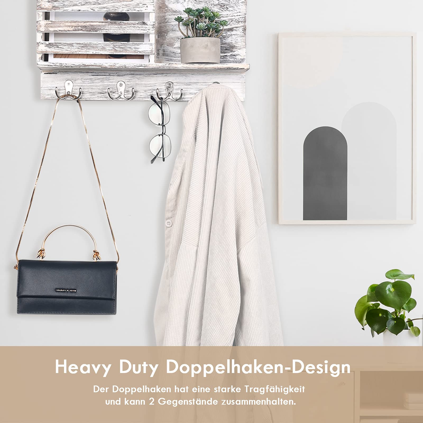 Gorffy Kleiderhaken Silber, 20 Stück Garderobenhaken Vintage mit Schrauben, Metall Doppelhaken Wandhaken, Kleiderhaken Wand für Bad, Küche (Silber, 20 Stück)STARK & ROSTSCHUTZ: Diese Kleiderhaken bestehen aus einer hochwertigen Zinklegierung, die stark und rostfrei ist.HEAVY DUTY: Diese Garderobenhaken haben eine starke Tragfähigkeit, die schwere Gegenstände halten kann.DOPPELHAKEN: Merkmale mit Doppelhaken-Design, die 2 oder mehr Gegenstände zusammen hängen können.EINFACHE INSTALLATION: Mit 2 Schrauben einen Haken in Schlafzimmer, Bad, Garderobe, Waschküche, Schränken und Küche befestigen.BREITE ANWENDUNG: Diese Wandhaken eignen sich hervorragend zum Aufhängen von Mänteln, Mützen, Roben, Schals, Taschen, Handtüchern und mehr.SpezifikationPAKET ENTHÄLT: 20 Stück Kleiderhaken Silber & 80 Schrauben.MATERIAL: Kleiderhaken aus Zinklegierung und Eisenschrauben.ABMESSUNGEN DER SCHRAUBEN: 1.6 cm & 2.5 cmABMESSUNG PRO HAKEN: 5.5 x 4 cmGEWICHT PRO HAKEN: 14gGorffy ist stets bemüht, dem Kunden ein hervorragendes Einkaufserlebnis zu bieten. Wenn Sie nach Erhalt dieser Garderobenhaken Silber Fragen haben, zögern Sie bitte nicht, uns zu kontaktieren. Wir helfen Ihnen, alle Probleme so schnell wie möglich zu lösen.