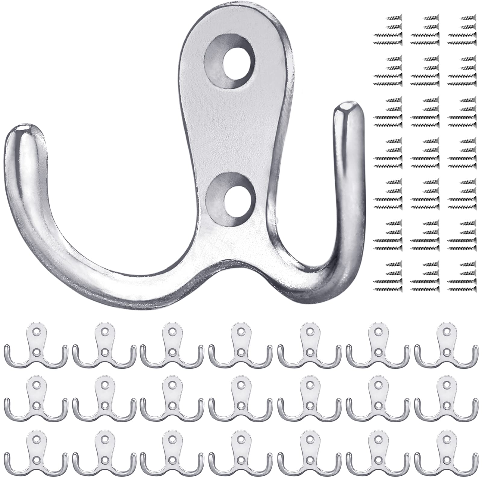 Gorffy Kleiderhaken Silber, 20 Stück Garderobenhaken Vintage mit Schrauben, Metall Doppelhaken Wandhaken, Kleiderhaken Wand für Bad, Küche (Silber, 20 Stück)