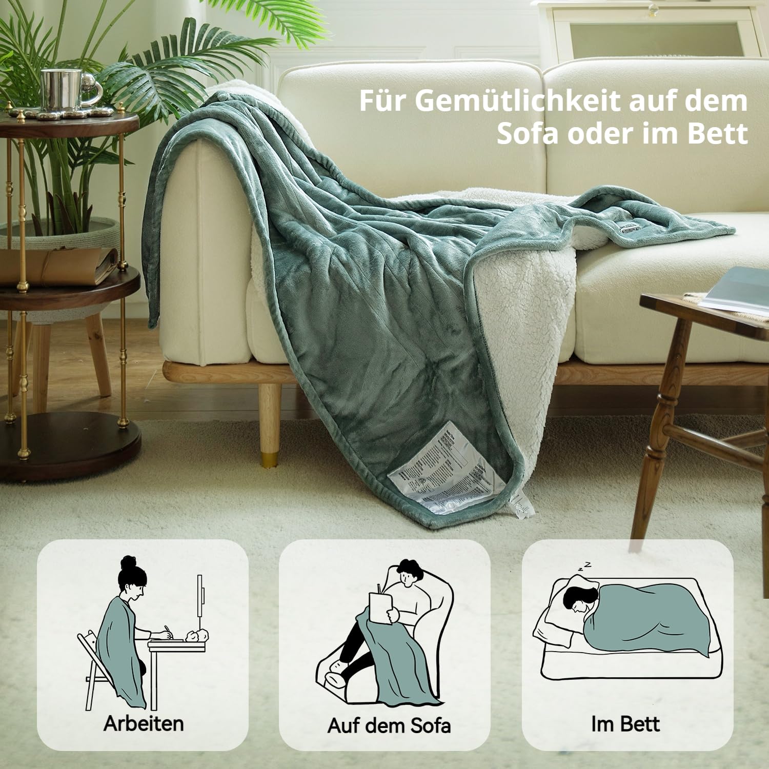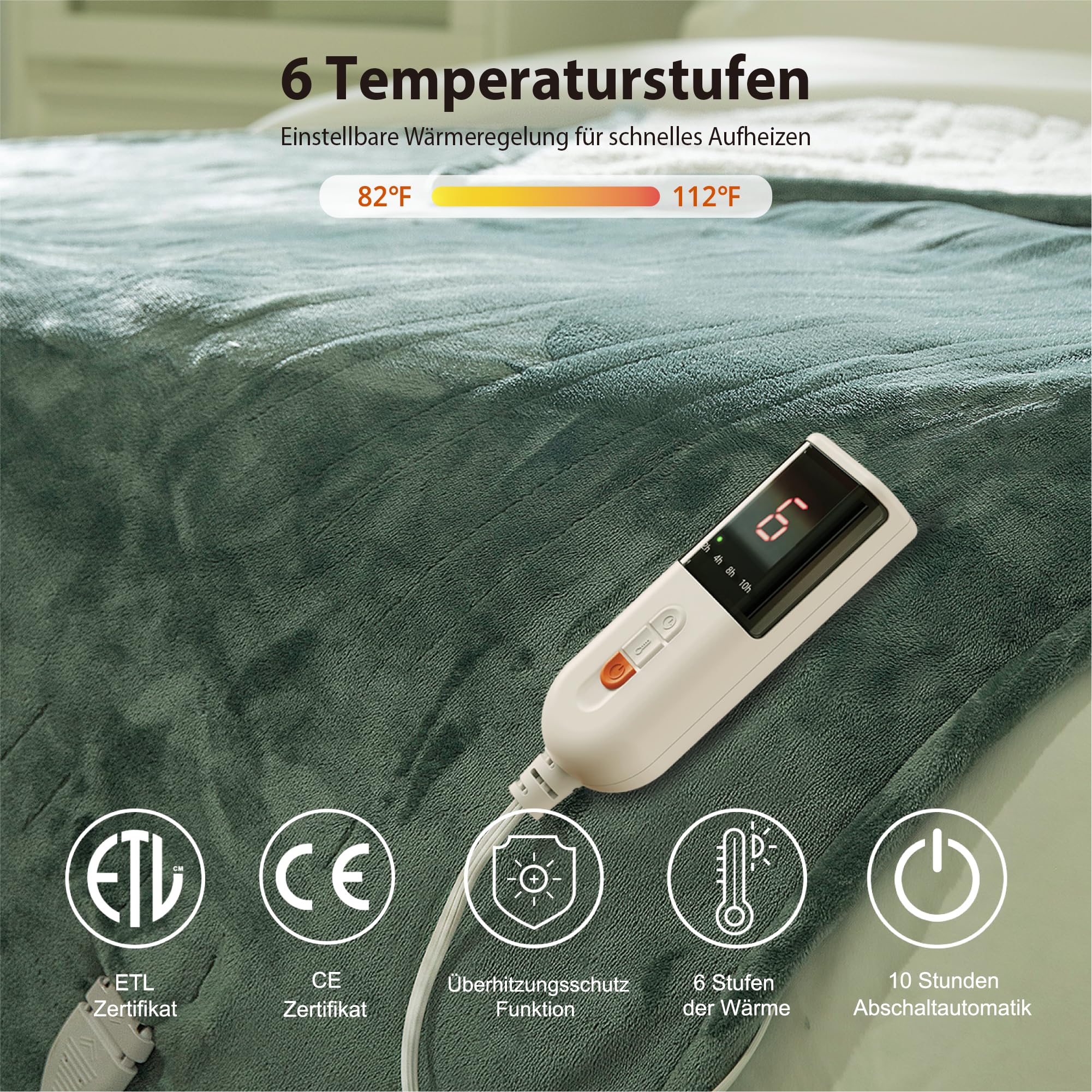 GOTCOZY Heizdecke 130x180 cm - Weicher seidiger Plüsch Wärmedecke Heizdecke 6 Heizstufen und 10 Stunden Auto-Off-Timer Überhitzungsschutz Kuscheldecke für Bett&Büro Waschbar(Grün)