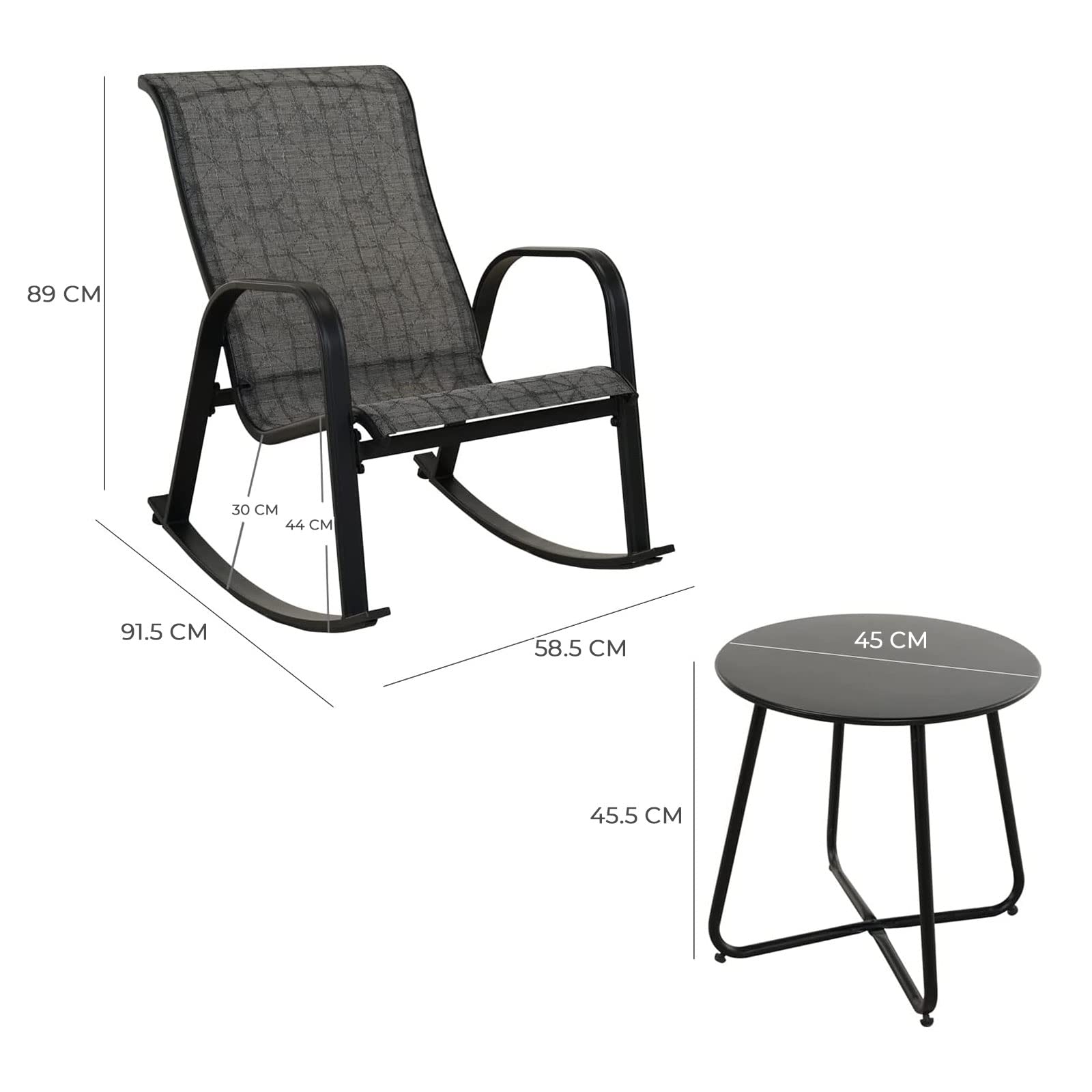 Grand patio Balkonmöbel Set, Lounge Set mit 2 Schaukelstühle und 1 Beistelltisch, Mesh Gewebe, Wetterfest, Sitzgruppe für die Garten, Terrasse (Schwarz & Grau kariert)