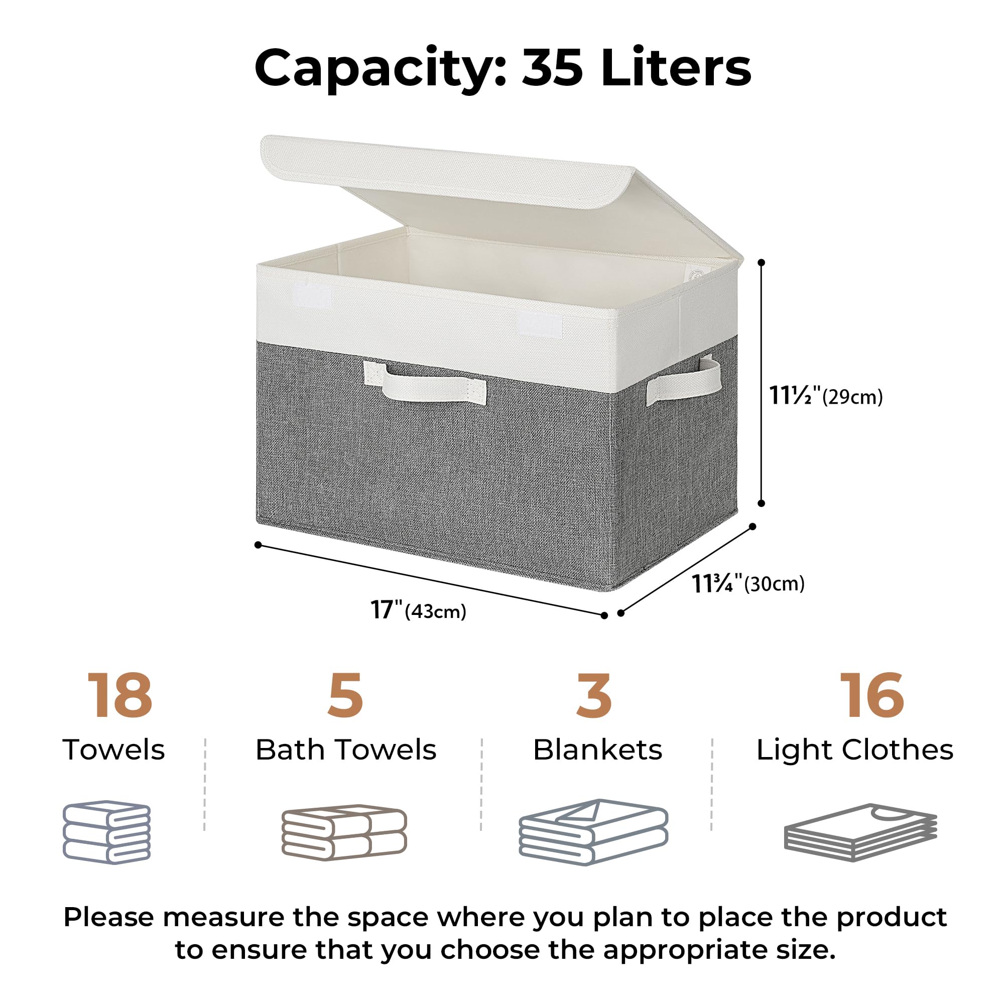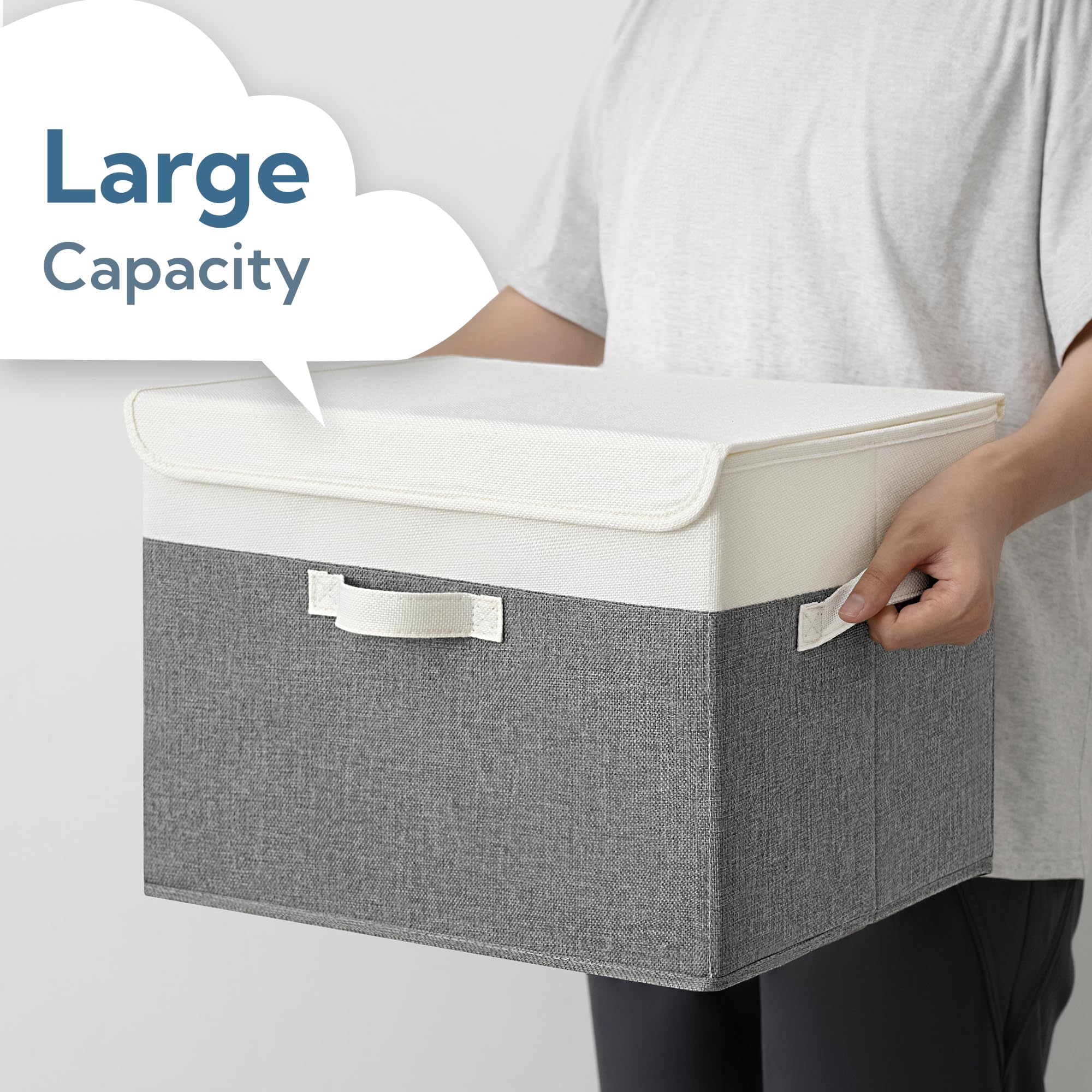 GRANNY SAYS Aufbewahrungsboxen mit Deckel gross, 2 Stück Kisten Aufbewahrung, Aufbewahrungsbox mit Deckel Stoff, Aufbewahrungskörbe für Kleidung, weiss-grau Faltboxen mit Deckel für Kleiderschrank