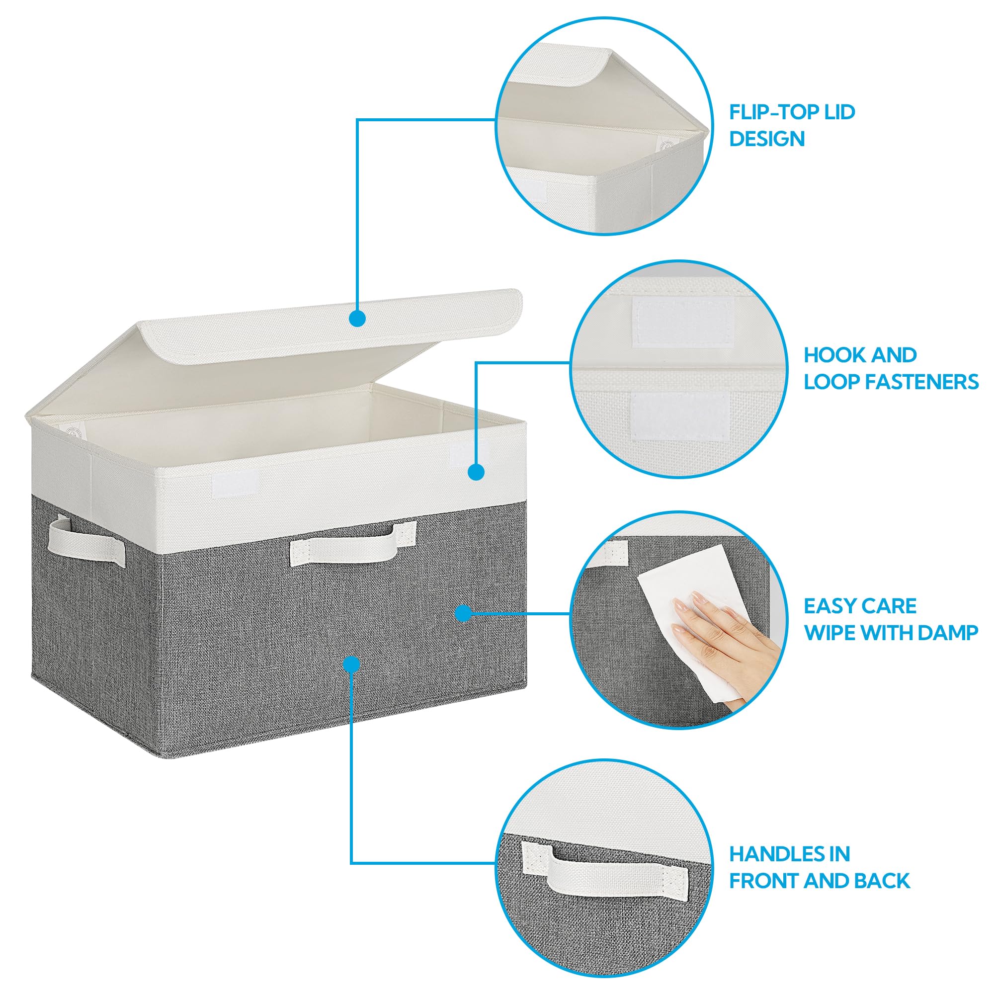 Praktische Griffen und Deckel - Jede Ordnungsbox hat einen flexiblen Flip-Top-Deckel, der verhindert, dass Staub und anderer Schmutz eindringt und Ihre Sachen verunreinigt. Gleichzeitig sind die Ordnungsboxen mit zwei stabilen Griffen erleichtern Bewegen und den Transport.