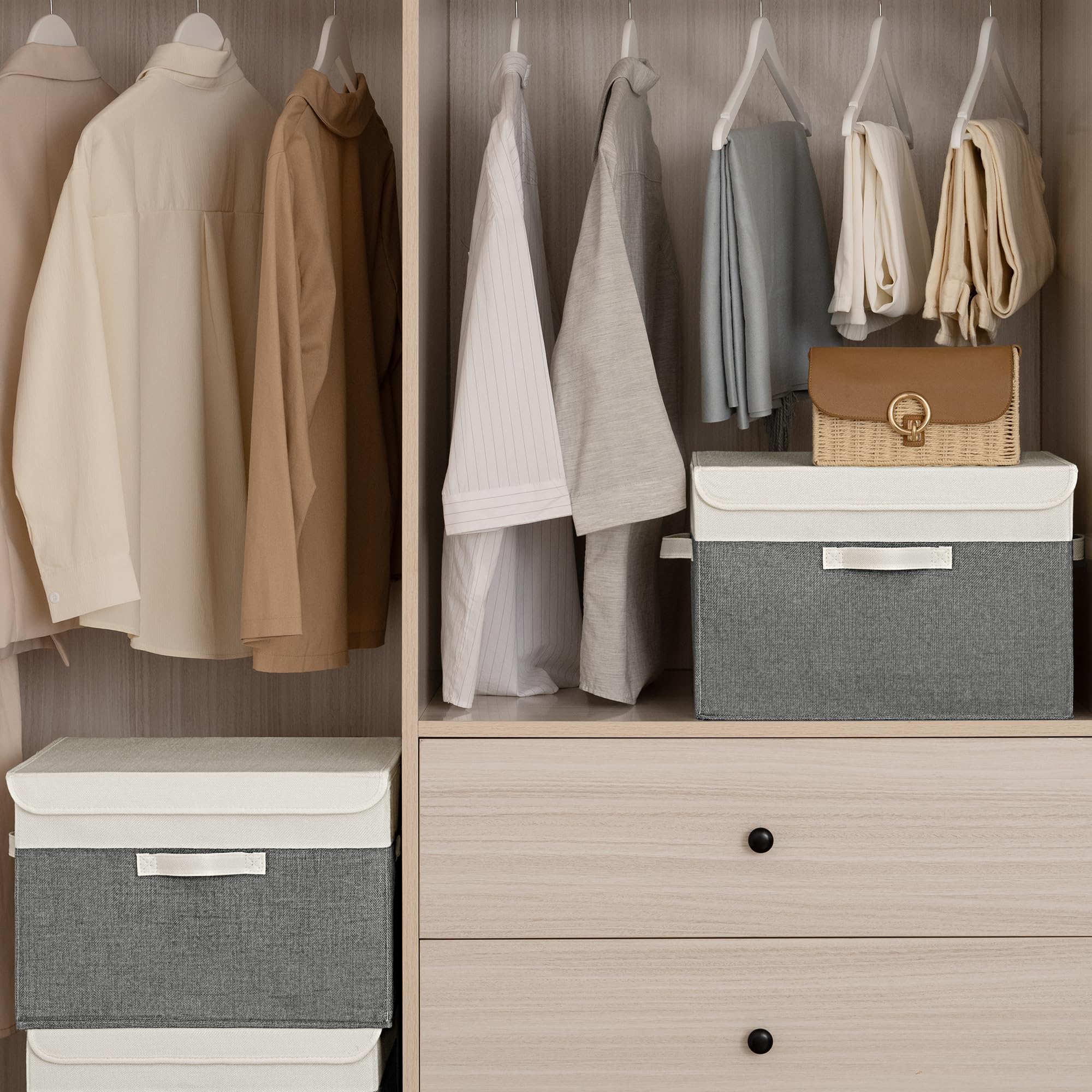 Vielfältige Nutzung - Diese elegante und grosszügig gestaltete Aufbewahrungsbox eignet sich für alle Räume wie Schlafzimmer, Kinderzimmer usw. und Kleiderschrank in Ihrem Haus, nicht nur für Kleidung, sondern auch für Kinderspielzeug, Handtücher, Bücher usw.