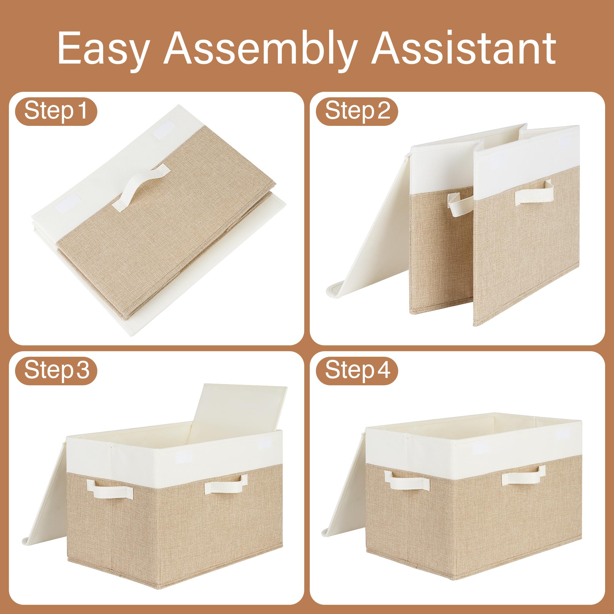 Hochfeste Materialien - Diese Boxen Aufbewahrung mit Deckel aus verdicktem Vliesstoff ist an allen Seiten und am Boden mit PP-Pappe verstärkt, was für zusätzliche Festigkeit, Haltbarkeit und Stapelbarkeit sorgt. Ausserdem sind diese Faltboxen leicht zu reinigen mit einem feuchten Tuch ab.