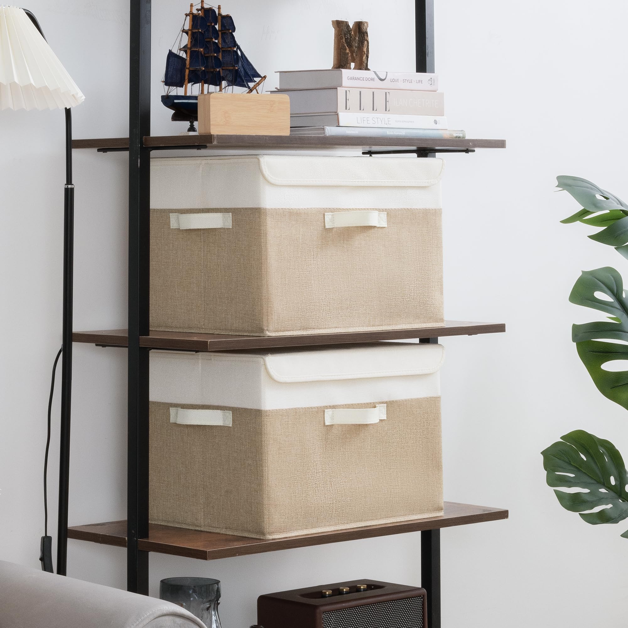 GRANNY SAYS Aufbewahrungsboxen mit Deckel Stoff, 2 Stück Kisten Aufbewahrung gross, Organizer Box mit Deckel, Aufbewahrungskörbe für Kleidung, weiss-braun Faltboxen mit Deckel für Kleiderschrank