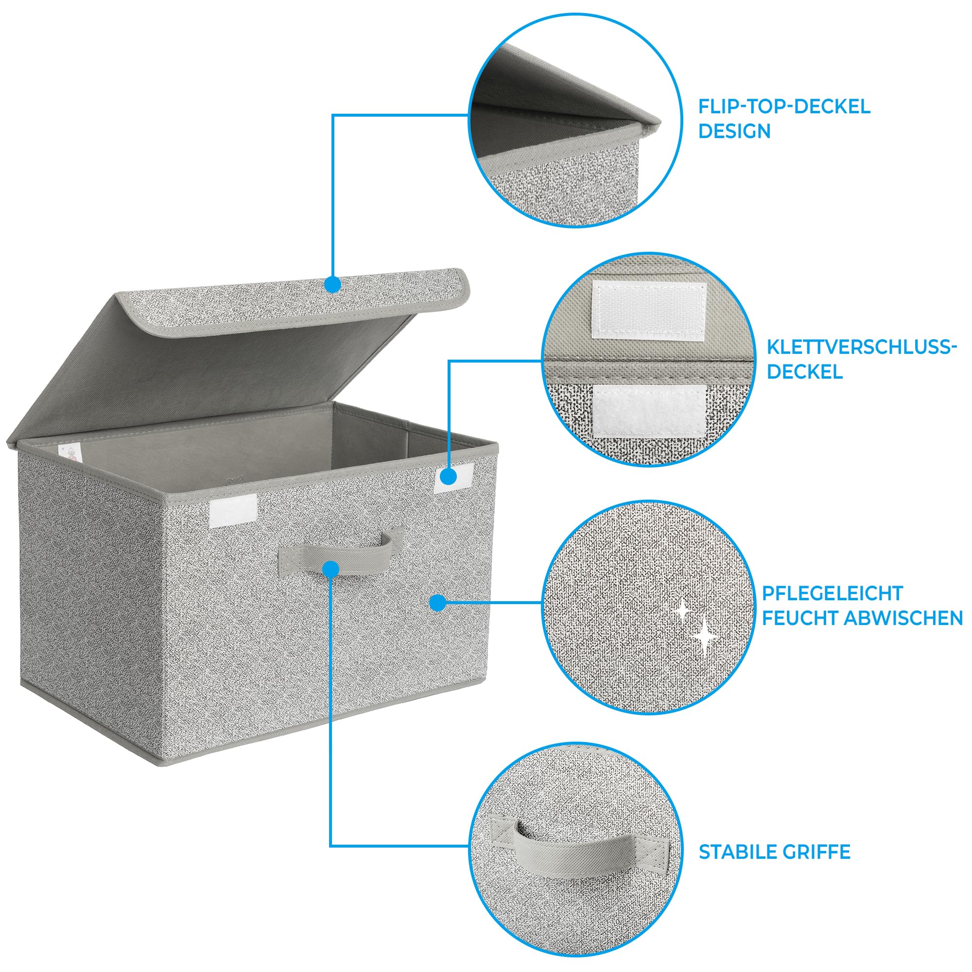Praktische Griffen und Deckel - Jede Ordnungsbox hat einen flexiblen Flip-Top-Deckel, der verhindert, dass Staub und anderer Schmutz eindringt und Ihre Sachen verunreinigt. Gleichzeitig sind die Ordnungsboxen mit zwei stabilen Griffen erleichtern Bewegen und den Transport.