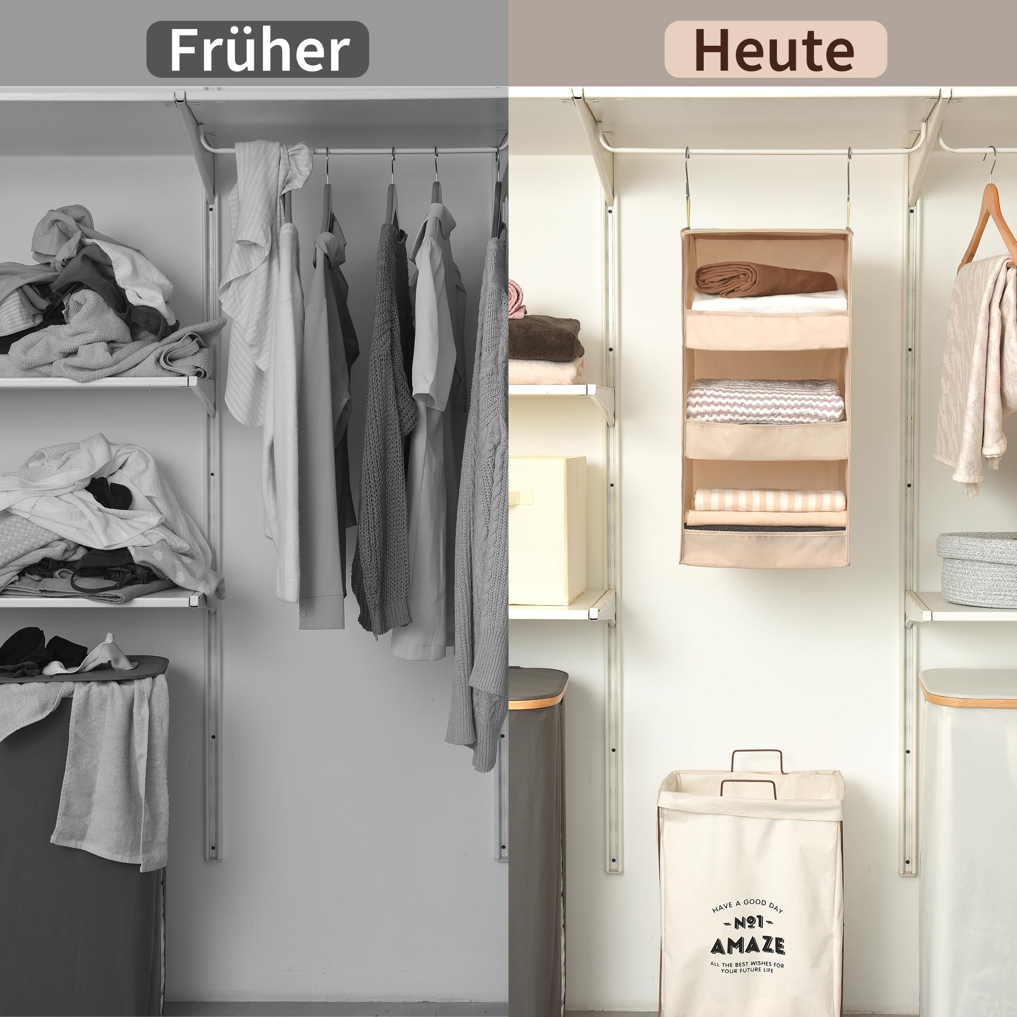 GRANNY SAYS hänge Organizer mit 3 Fächern, 1 Stück Hängeaufbewahrung Schrank, Kleiderschrank Organizer Hängend, Khaki Hängeregal, Hängeorganizer Schrank, Faltbare hänge Regal Stoff