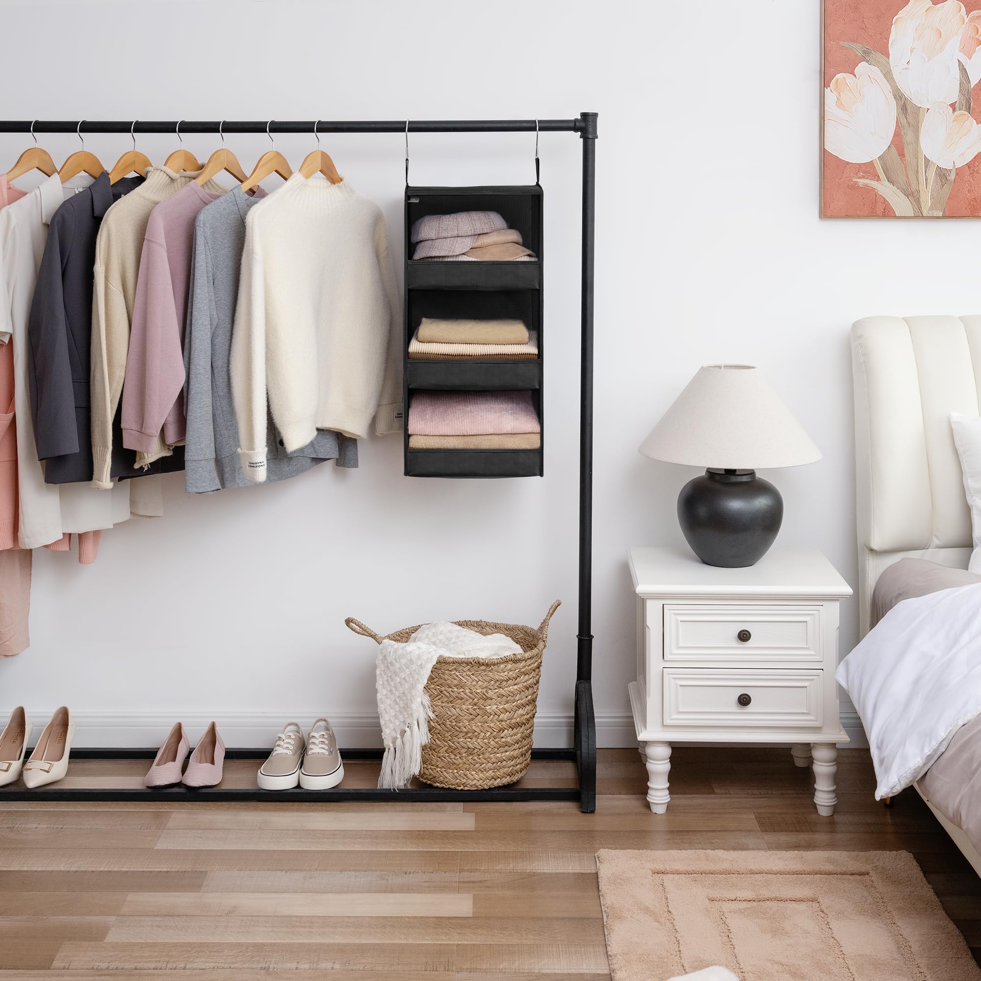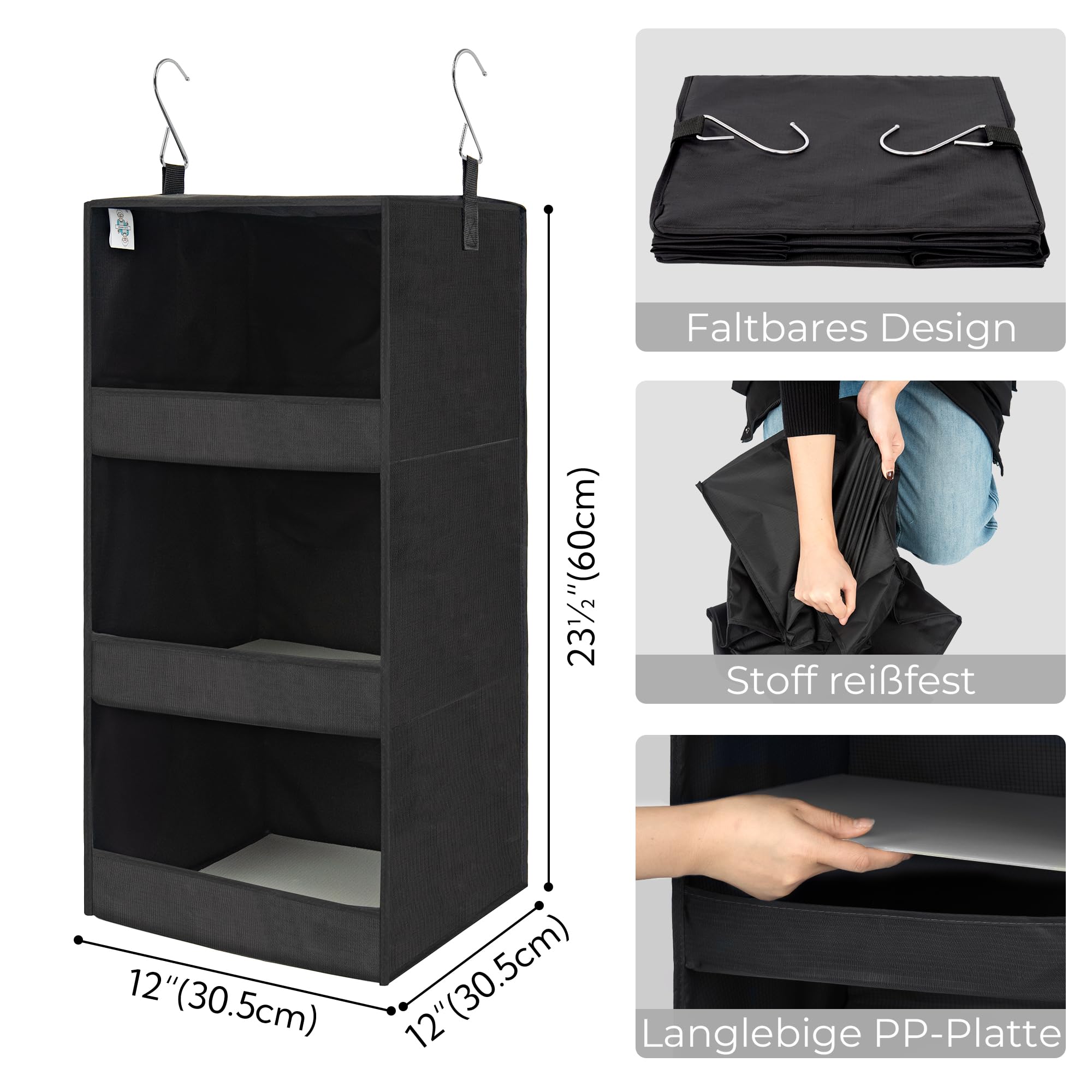 GRANNY SAYS Hängeregal Schrank mit 3 Fächern, 1 Stück Hängeaufbewahrung Kleiderschrank Organizer hängend, Schrank Hängeorganizer, Faltbare Hängeregal Stoff, Hanging Organizer Schwarz