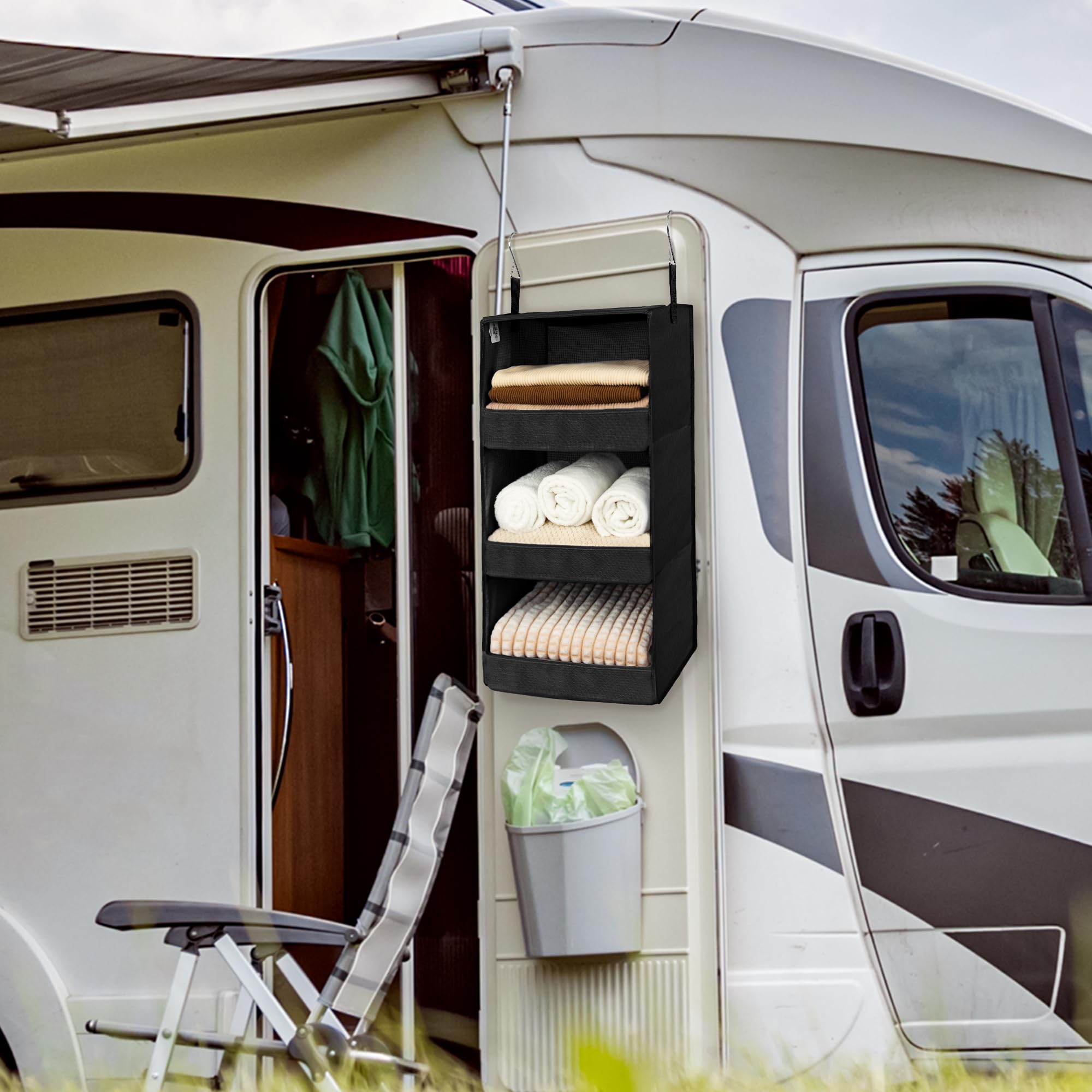 VIELSEITIG EINSETZBAR – Der Hängeschrank Organizer ist perfekt für Kleiderschränke, Wohnwagen und Wohnmobile geeignet und bietet vielseitige Aufbewahrungsmöglichkeiten für Gegenstände wie T-Shirts, Accessoires, Socken, Handtücher und vieles mehr.