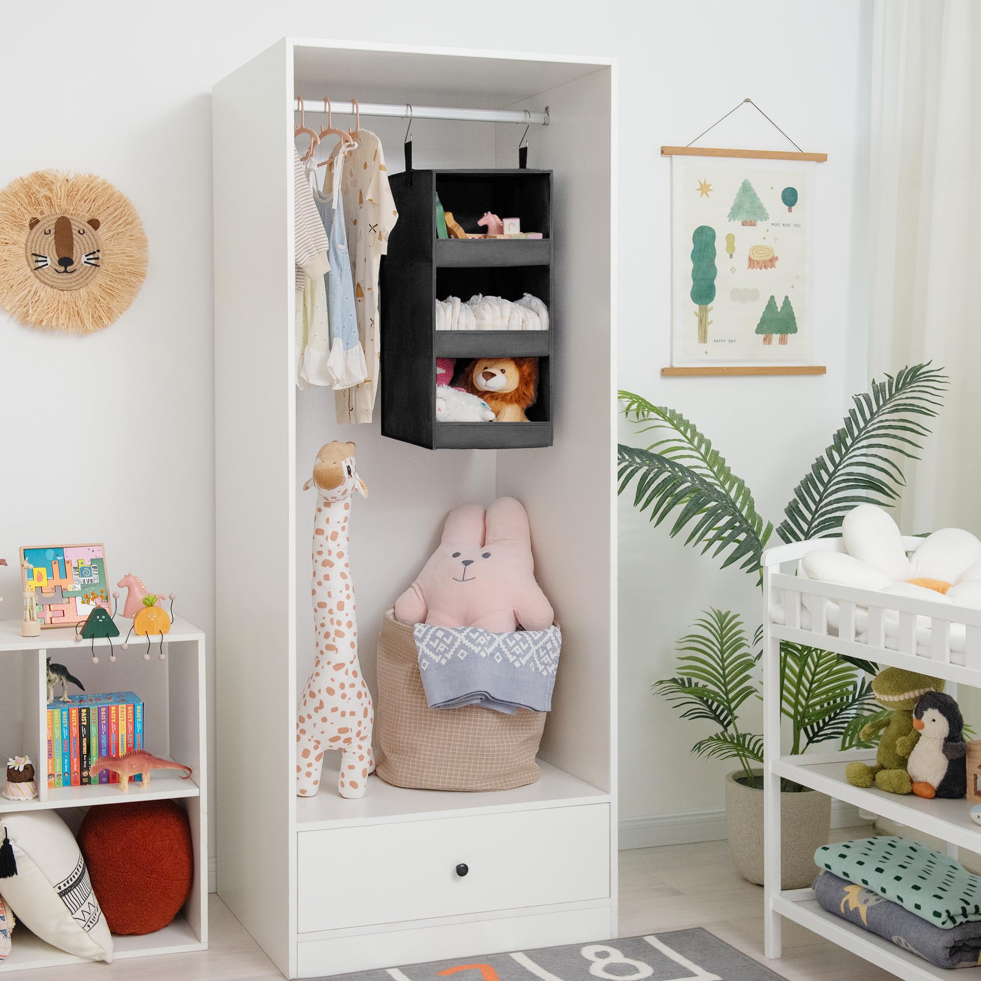 GRANNY SAYS Hängeregal Schrank mit 3 Fächern, Hängeorganizer Kleiderschrank 1 Stück Hängeaufbewahrung Kleiderschrank Organizer Hängend, Schwarz Hängeorganizer, Schrank Hängender Organizer, Kleiderschrank Hängend Faltbar Hängeregal Stoff, Hänge-Organizer