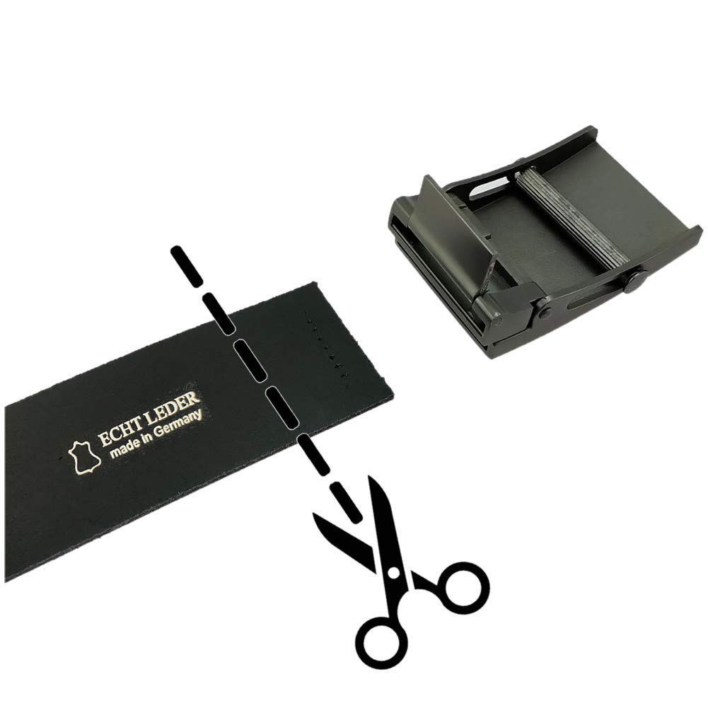 Hosengürtel aus Rindsleder, Breite 4 cm mit metallener Gürtelschliesse und dem dargestellten Gravurmotiv Das Motiv ist dauerhaft per Fräser-Gravur in die Oberfläche eingebracht (keine billige Lasergravur, die sich mit der Zeit wieder ablöst). Falls gewünscht, lässt sich der Gürtel selbst ablängen. Dazu wird der Verschluss auf der Rückseite der Gürtelschliesse geöffnet, der Gürtel mit einer Schere auf die gewünschte Länge gekürzt und dann wieder mittels des rückseitigen Klappverschlusses befestigt.