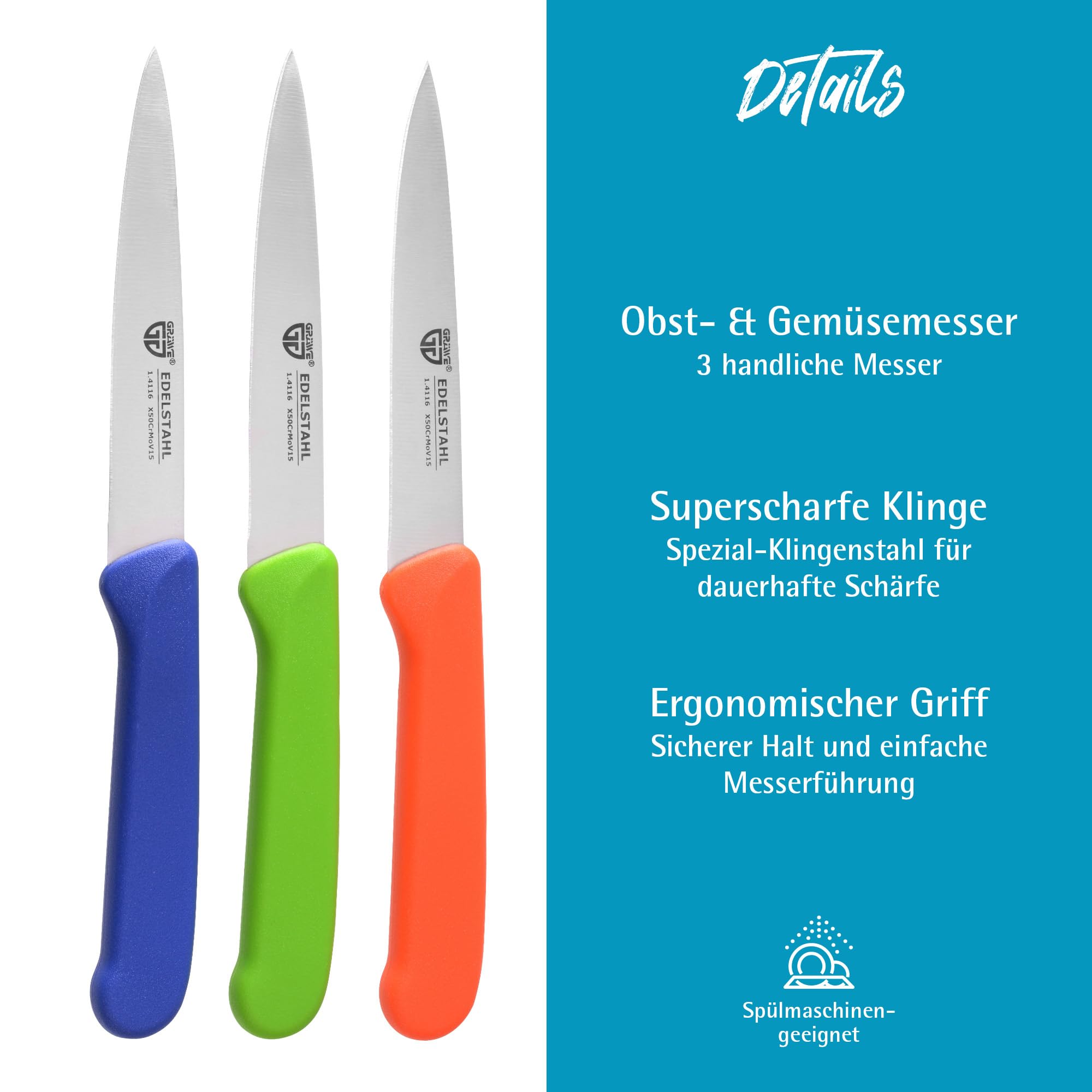GRÄWE Gemüsemesser, 6er Set, kleines Küchenmesser-Set, Obstmesser, Schälmesser, Edelstahl, Bunt, super scharf geschliffen