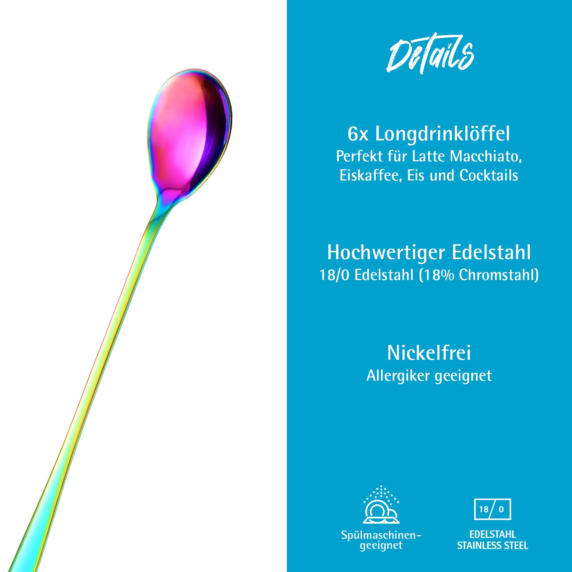 GRÄWE Eis- und Latte-Macchiato-Löffel aus Edelstahl, langer Löffel, ideal für Kaffee, Desserts und Eistee, spülmaschinenfest, mehrfarbig