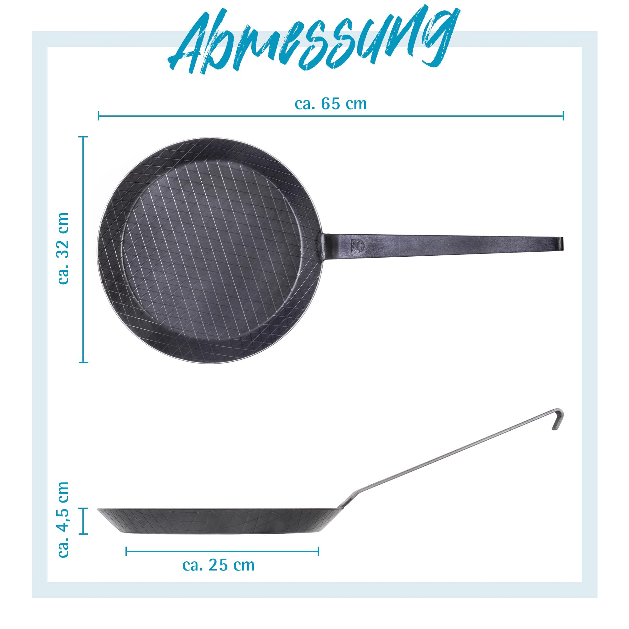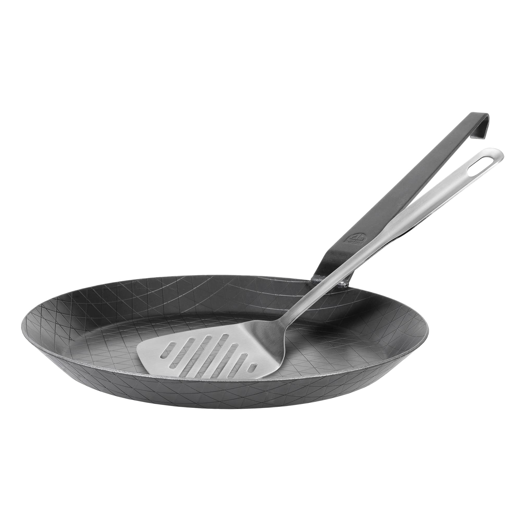 GRÄWE Schmiedeeiserne Bratpfanne Ø 32 cm, mit Hakenstiel, inklusive Pfannenwender aus Edelstahl