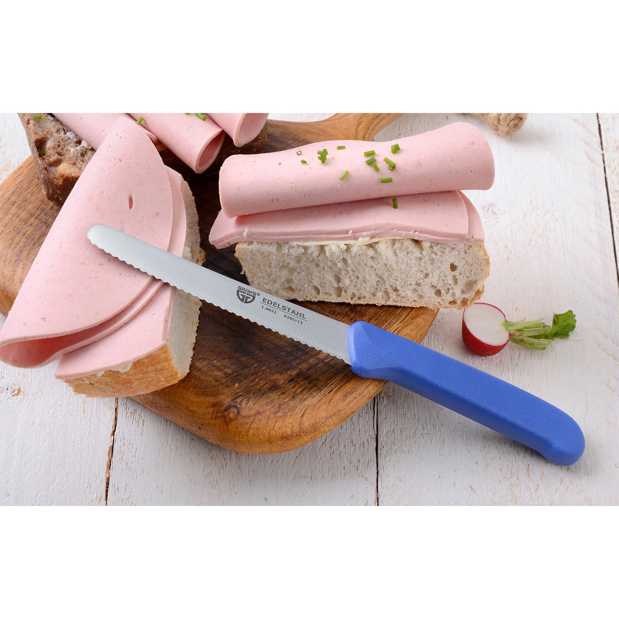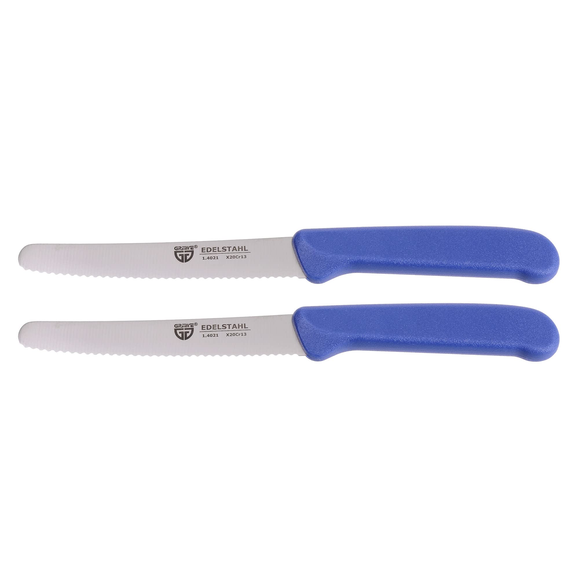 GRÄWE Tafelmesser 2 Stück, Messerset zum Schneiden, 2er Pack Brötchenmesser, Frühstücksmesser mit einseitigem Wellenschliff, Brotzeitmesser, scharfe Messer für Brotzeit, 21 cm - Blau