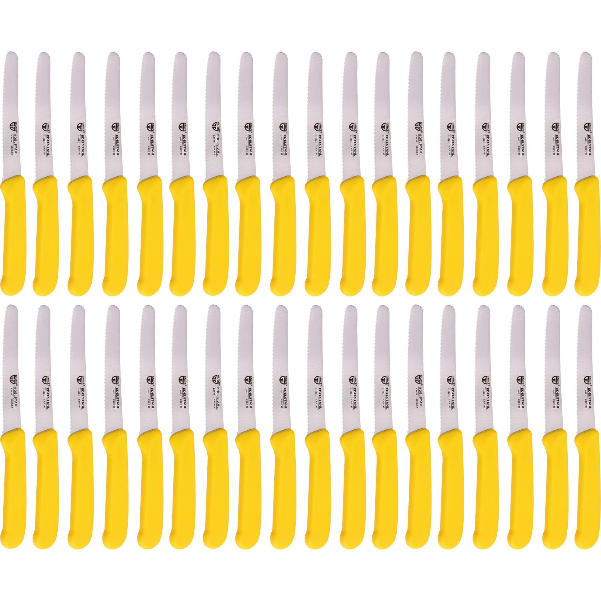 GRÄWE Tafelmesser 36 Stück, Messerset zum Schneiden, 36er Pack Brötchenmesser, Frühstücksmesser mit einseitigem Wellenschliff, Brotmesser, scharfe Messer für Brotzeit, 21 cm - Gelb