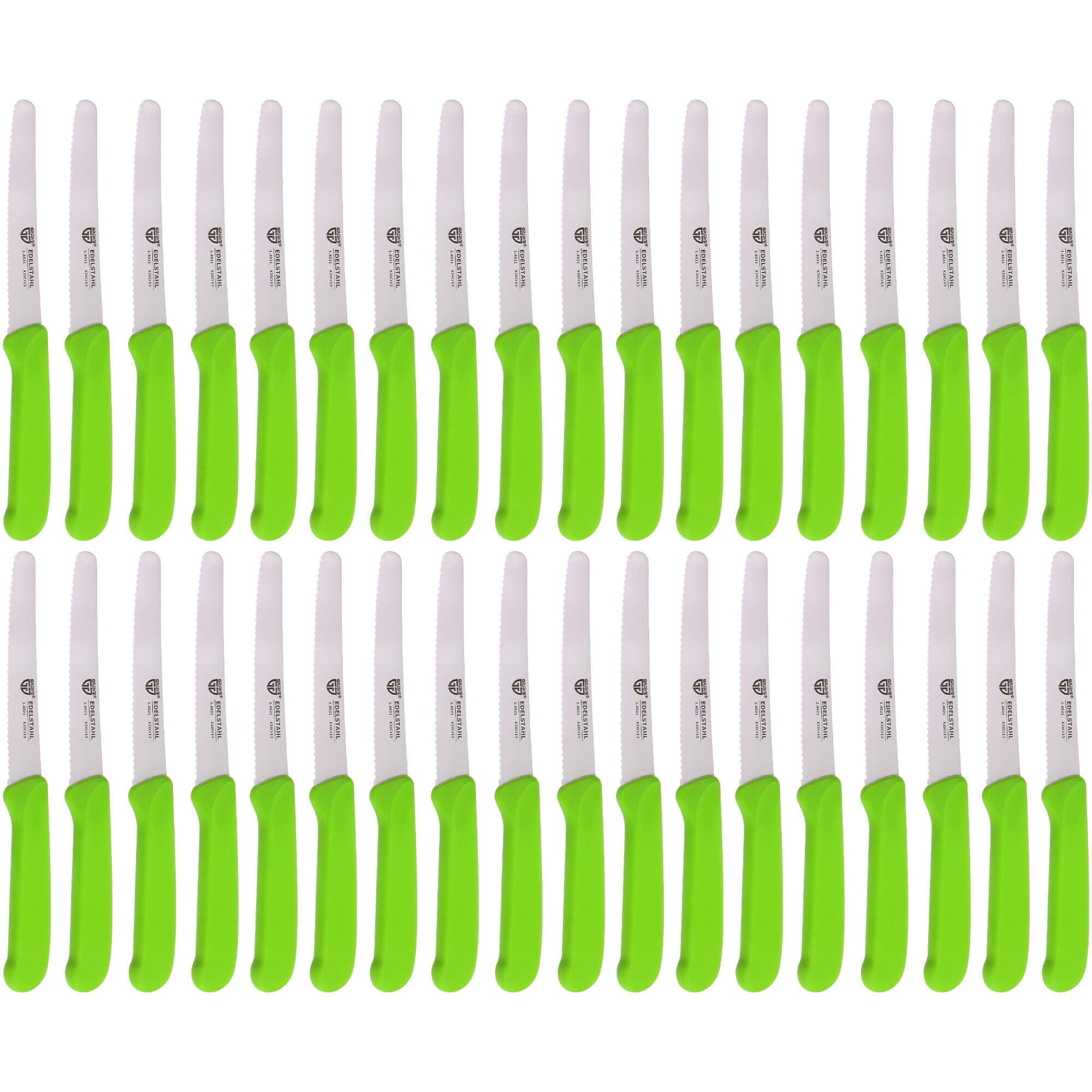 GRÄWE Tafelmesser 36 Stück, Messerset zum Schneiden, 36er Pack Brötchenmesser, Frühstücksmesser mit einseitigem Wellenschliff, Brotmesser, scharfe Messer für Brotzeit, 21 cm - Grün