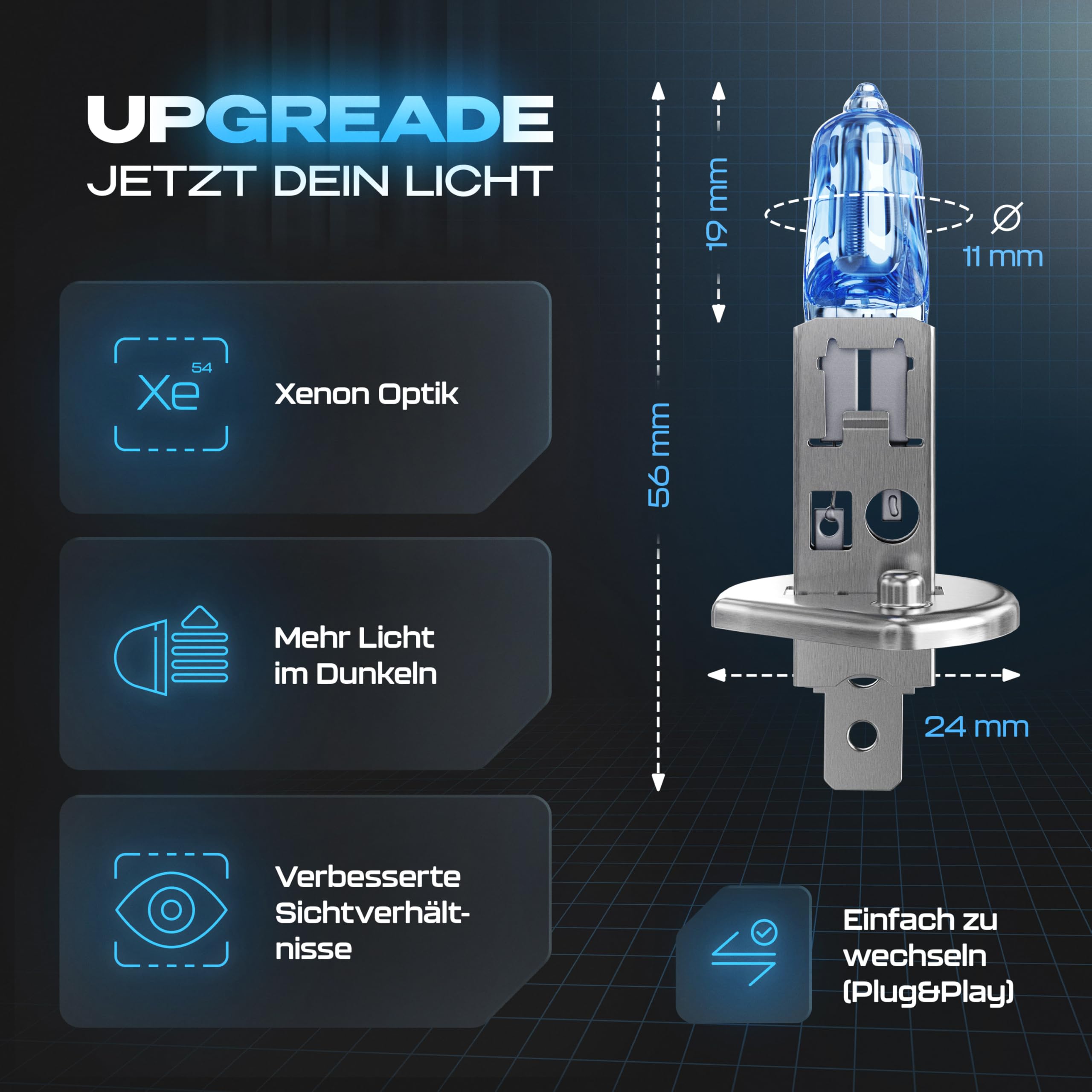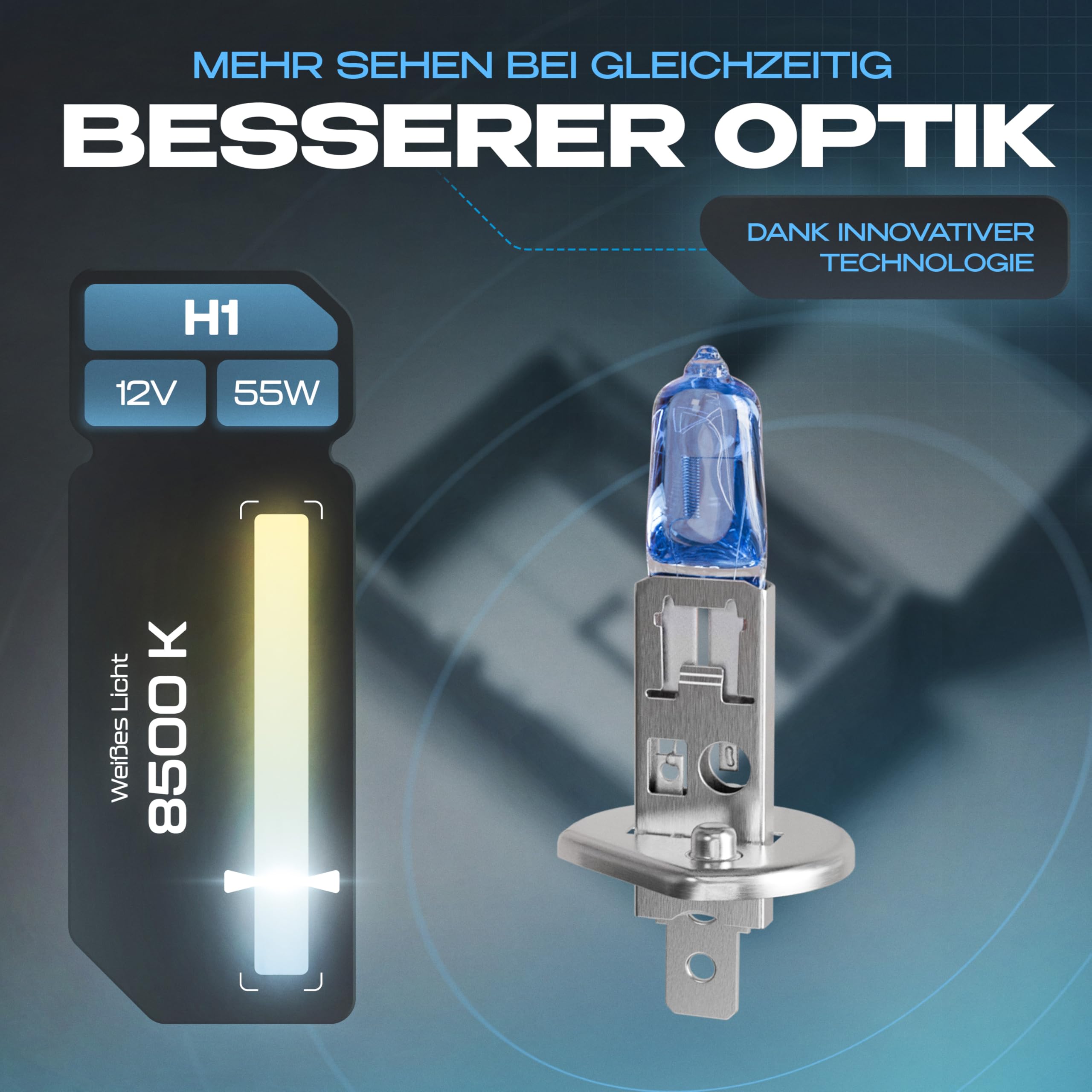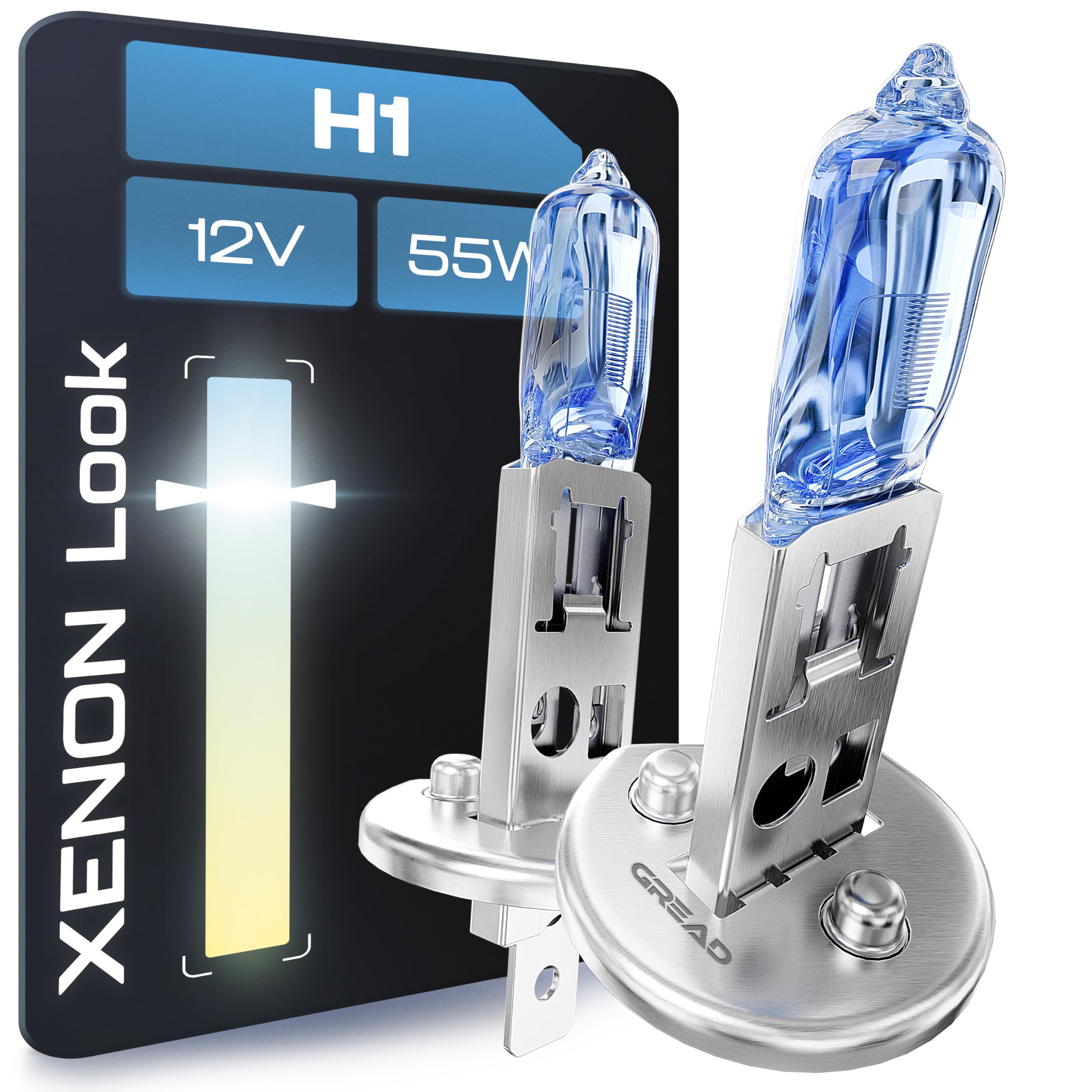 Gread - 2x H1 Halogen Birne Xenon Optik - superweiss - 8500k 55W - E-Prüfzeichen