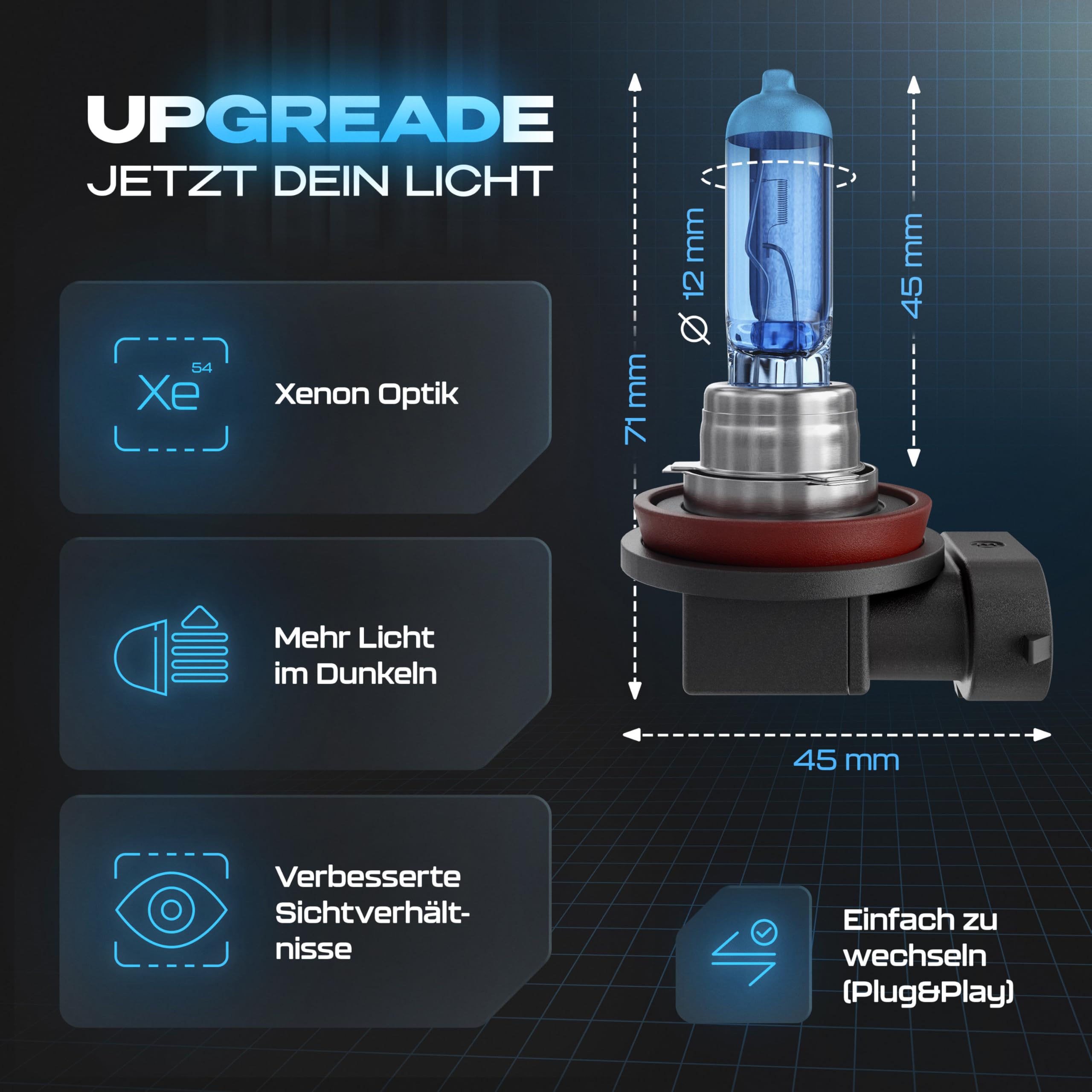 Gread - 2x H8 Halogenlampe Xenon Style - weiss - 8500k 35W - E-Prüfzeichen