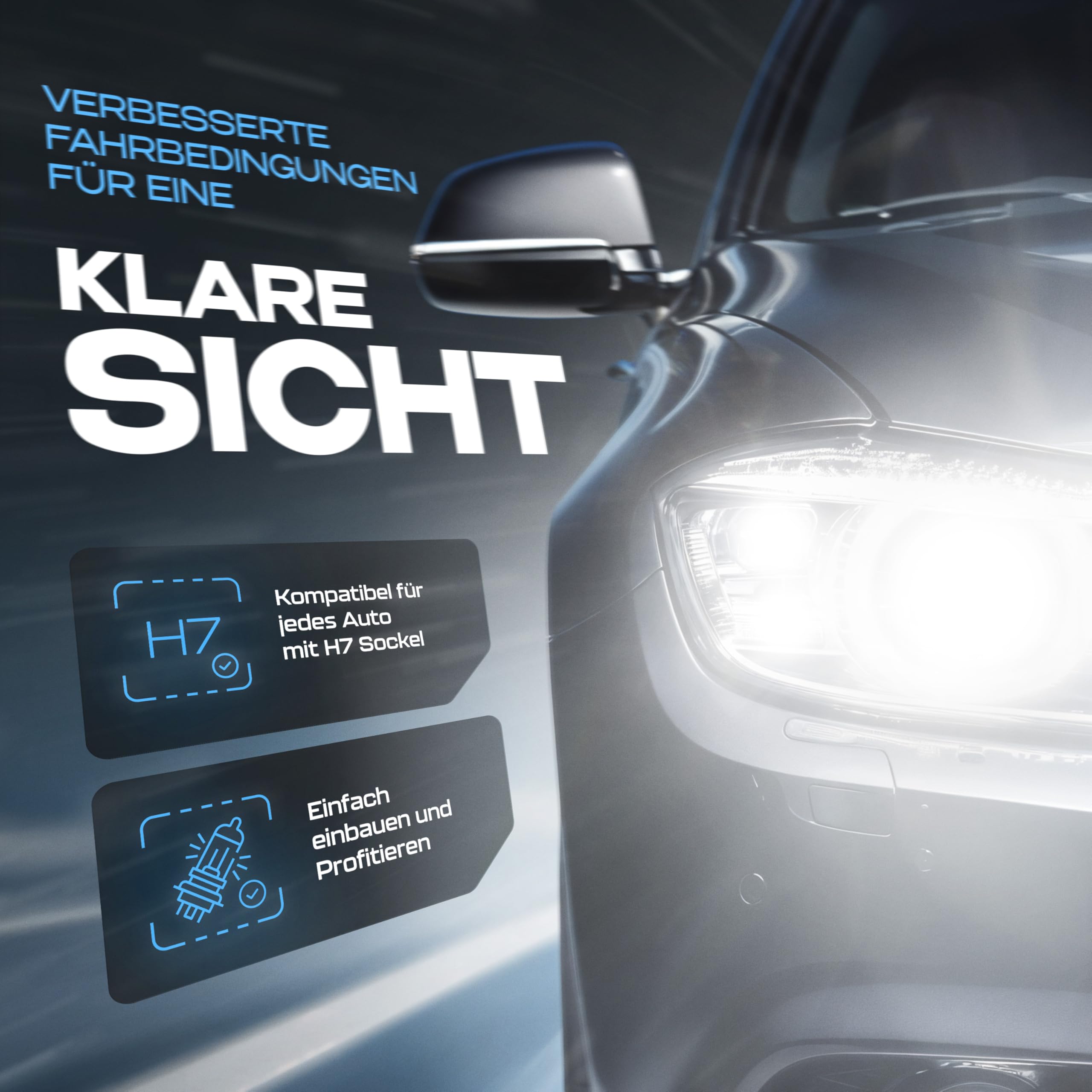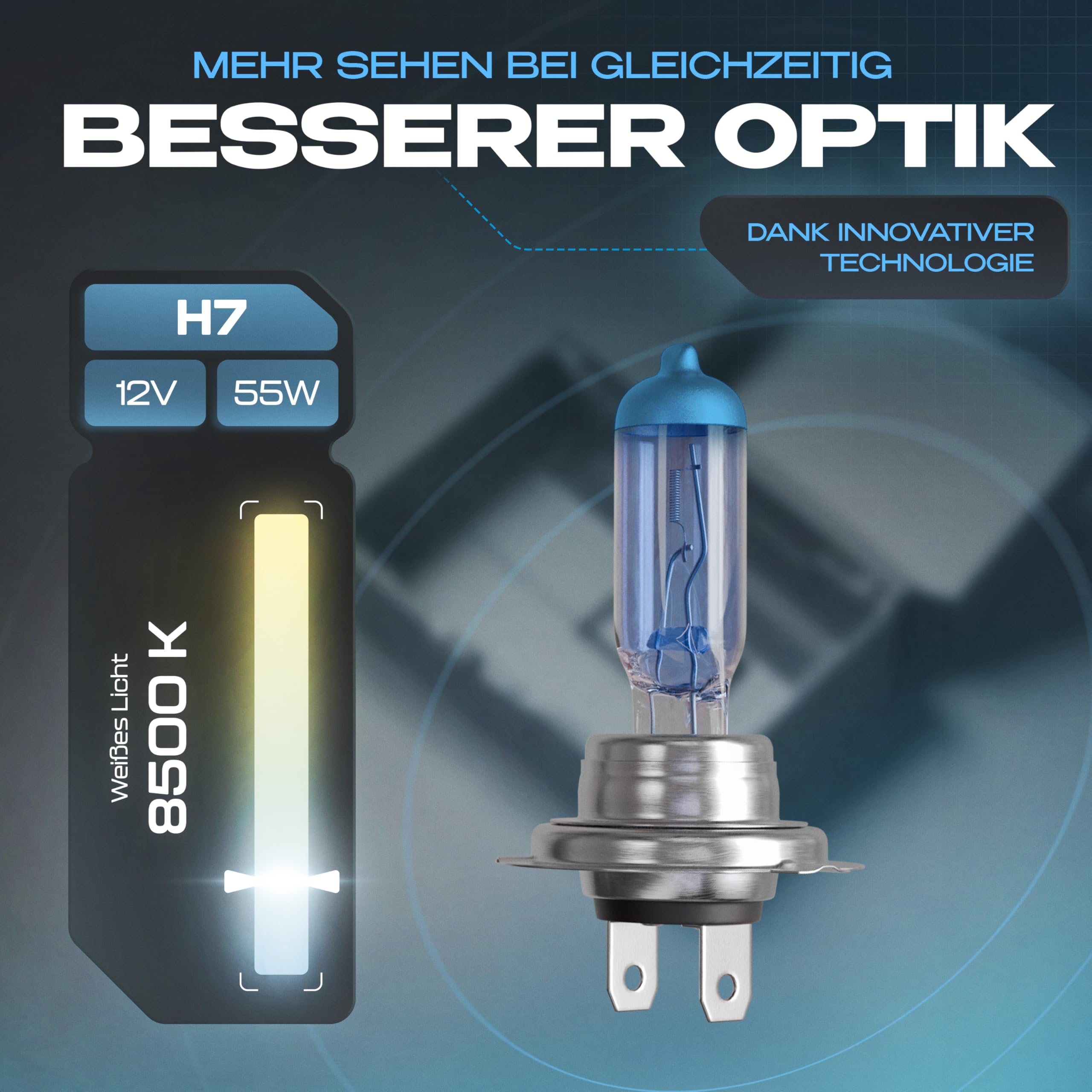 Gread - 2x H7 Halogen Lampen - super-white - 8500k 55W E-Prüfzeichen - Xenon Optik