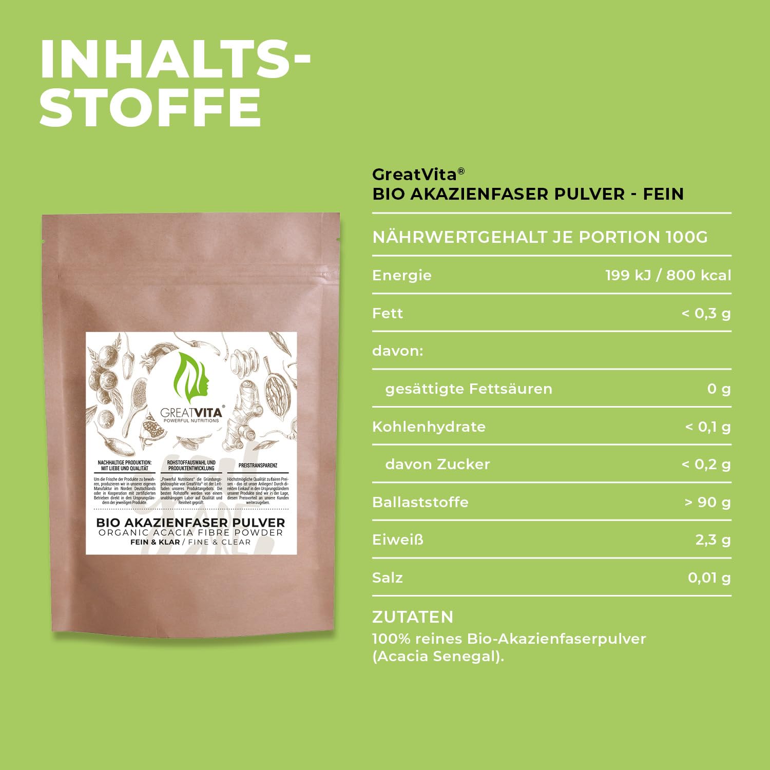 GreatVita Bio Akazienfaser Pulver – Gummi Arabicum Typ 4918