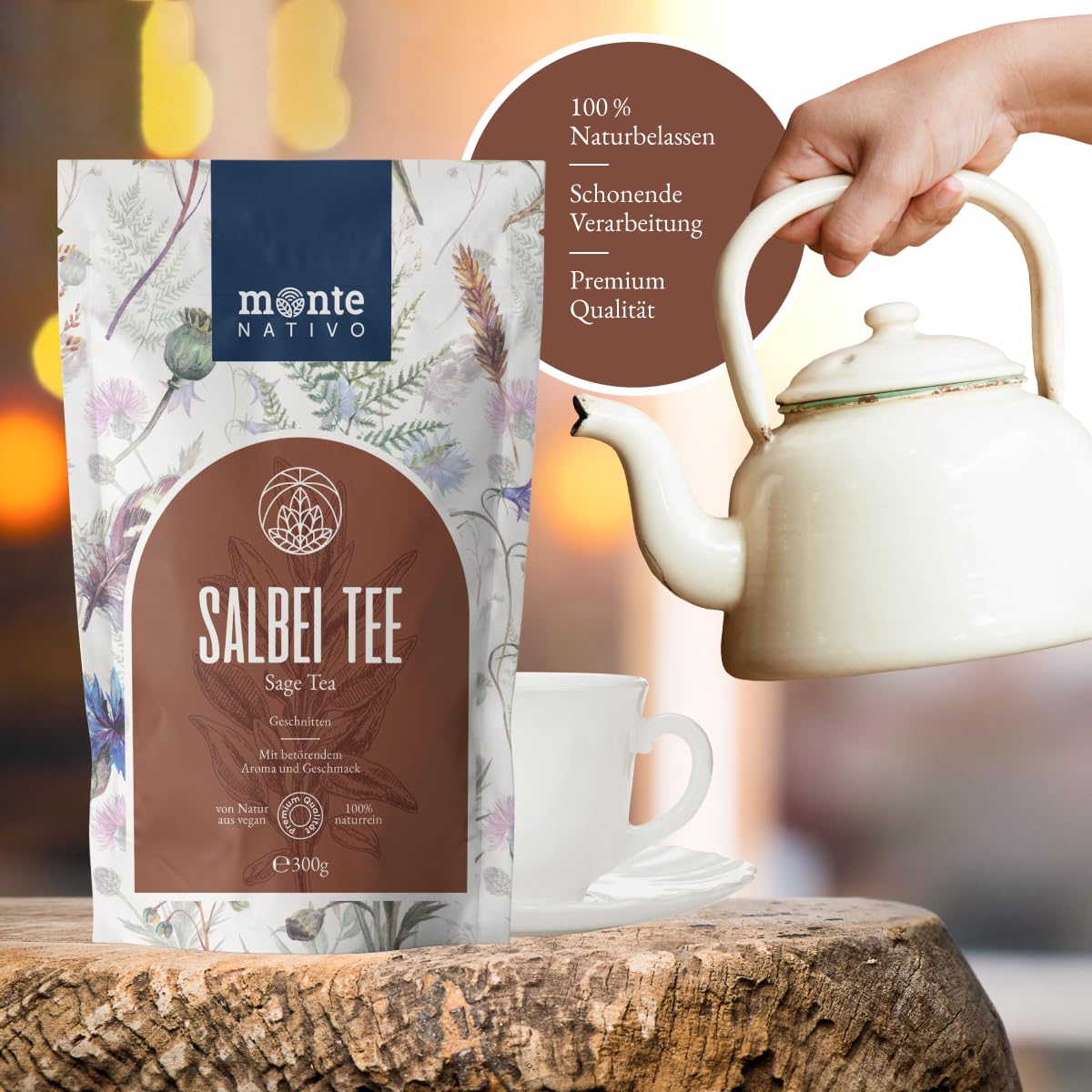 Salbeitee Monte Nativo (300g) - Salbei getrocknet - Salbeiblätter geschnitten zur jeder Zeit - 100% natürlich und ohne Zusatzstoffe - Aromatischer Kräutertee lose für einen köstlichen Aufguss